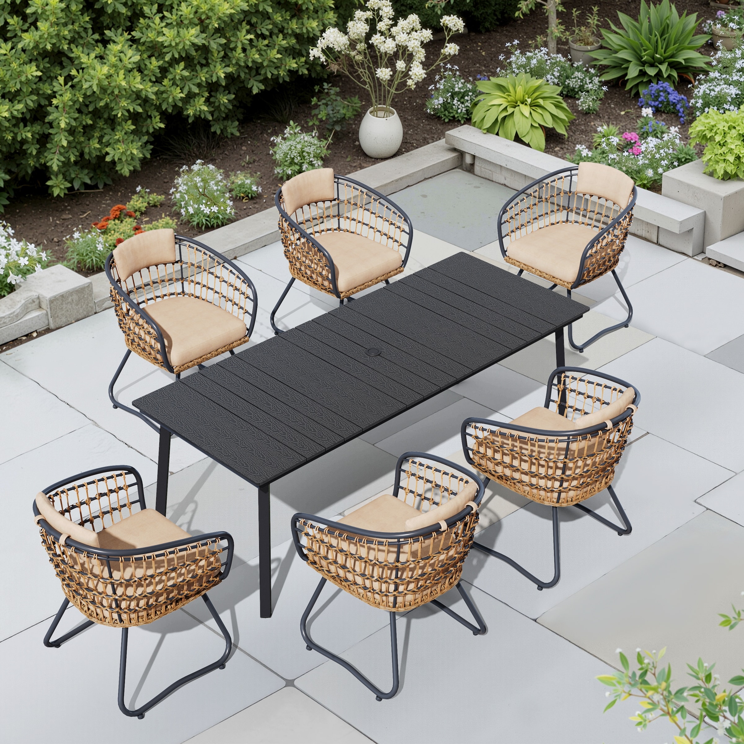 7PC Outdoor Patio Dining Set With Umbrella Hole Table Rattan Chairs