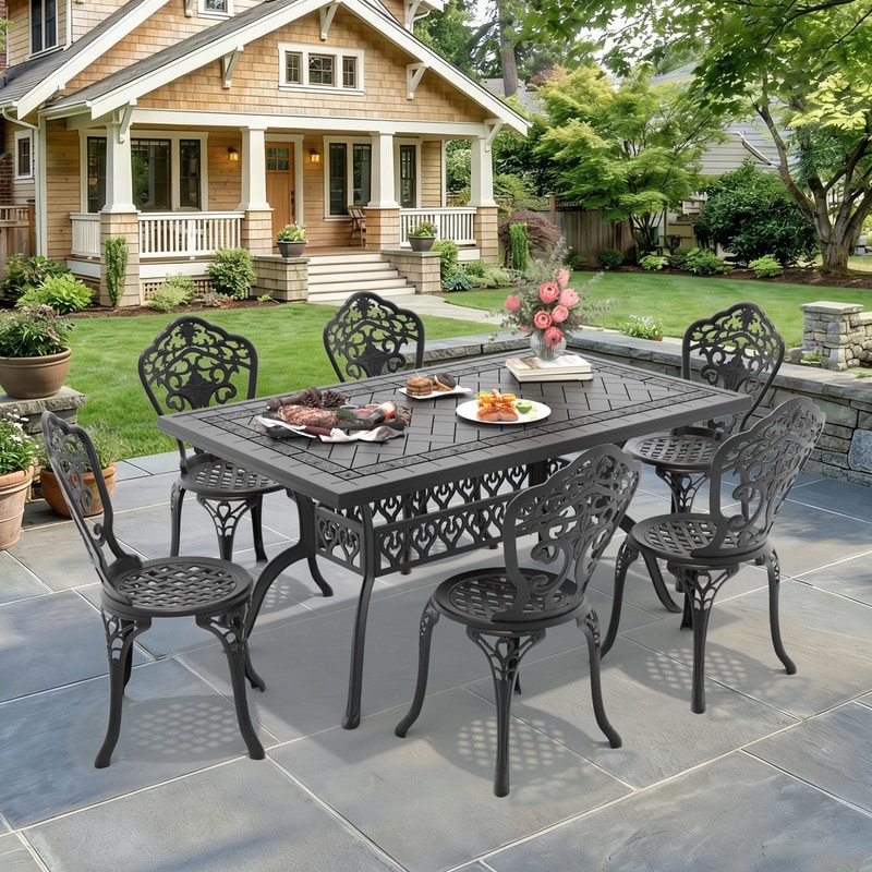 59.06in Rectangle Black Cast Aluminum Outdoor Dining Table & 6 Outdoor Dining Chairs without Cushion