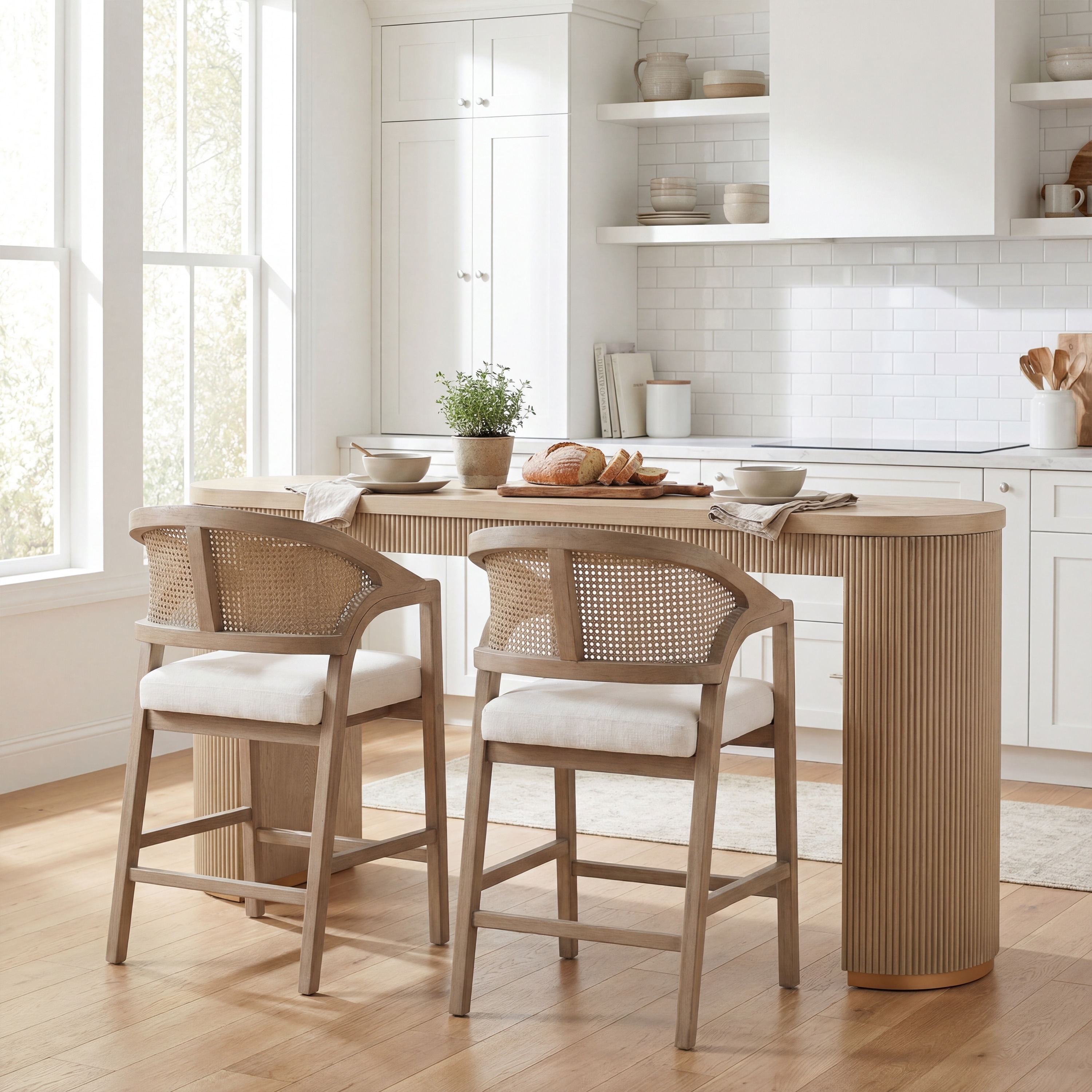 Aina Modern Bohemian Honey Rattan 4-Piece Dining Nook Set