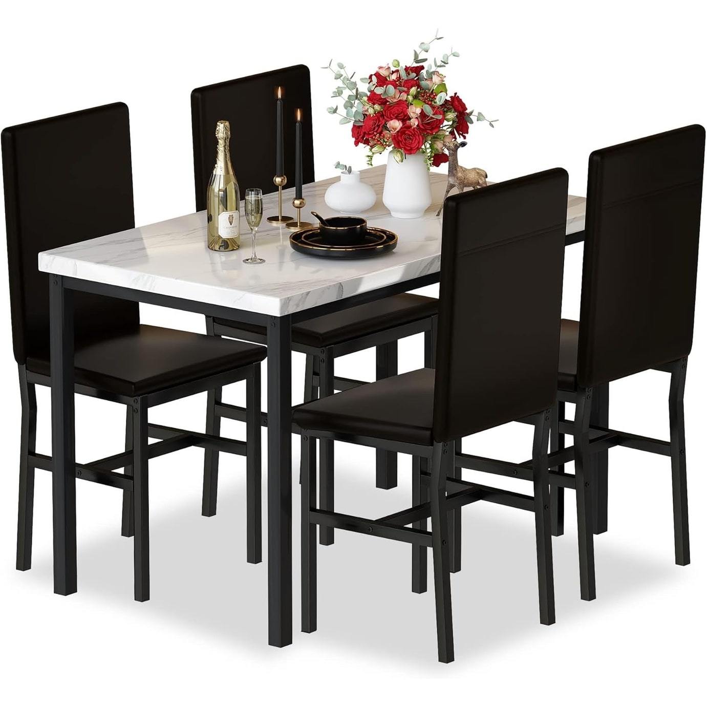 Modern 4-Piece Dining Set with Faux Marble Table & PU Leather Chairs, Space-Saving Kitchen Table Set for Small Spaces