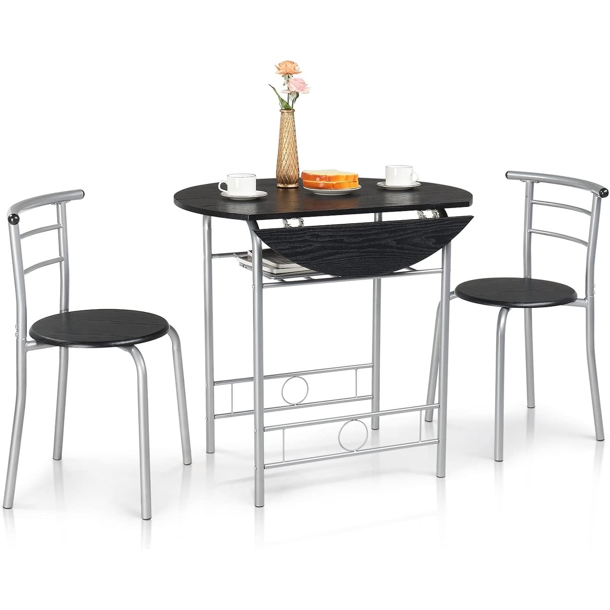 Small Kitchen Table Set 3 Piece - Round Dining Table with 4 Chairs