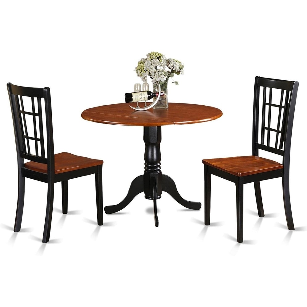 3-Piece Round Dining Set with Dropleaf Table and 2 Chairs, Black & Cherry Finish