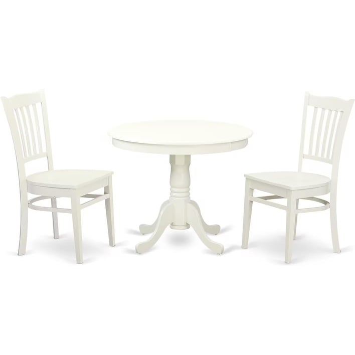 3-Piece Round Kitchen Table Set with Pedestal Base & 2 Wooden Chairs, 36x36 Inch, Linen White Finish