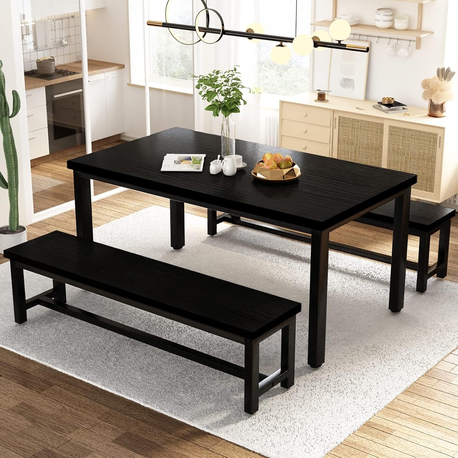 Modern Dining Table Set with 2 Benches, Space-Saving Design, Easy to Clean, Multi-Functional for Home Use