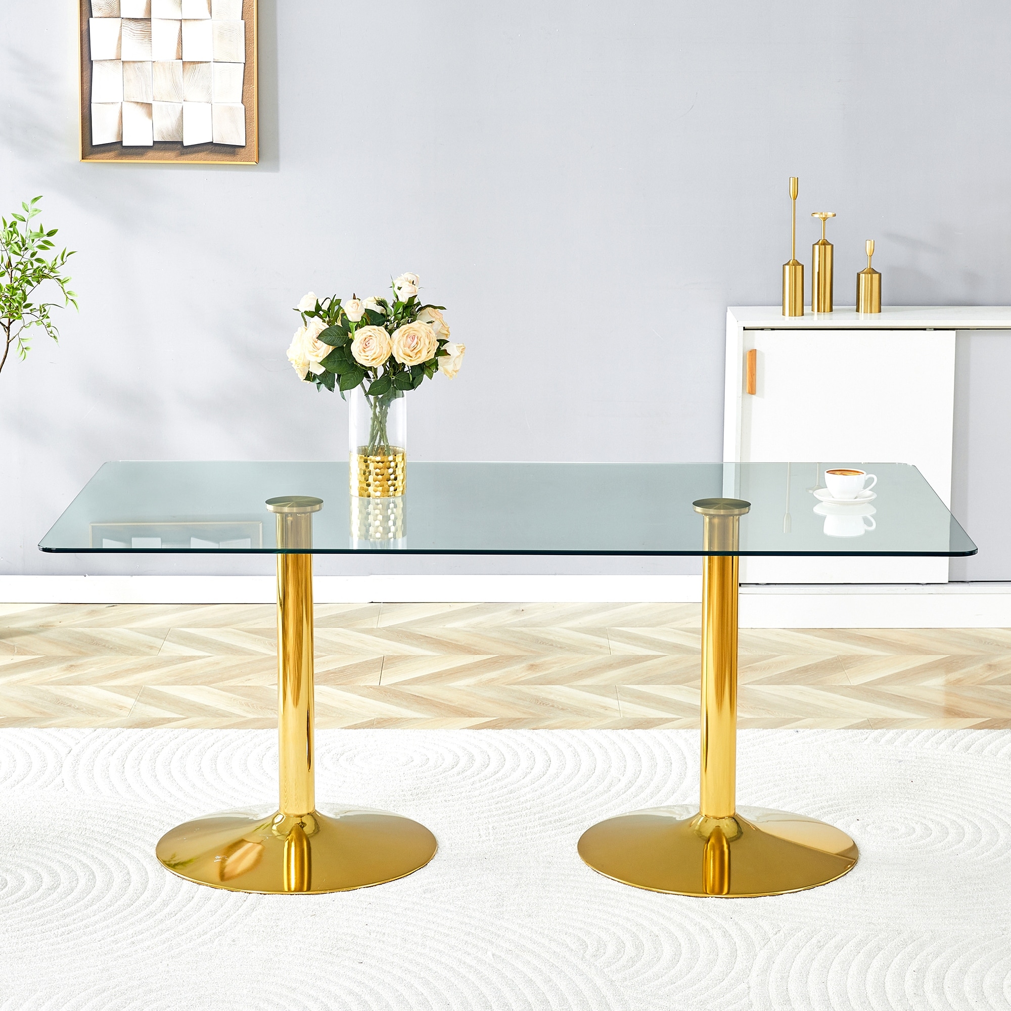 Rectangle Glass Dining Table with Metal Tubular Legs