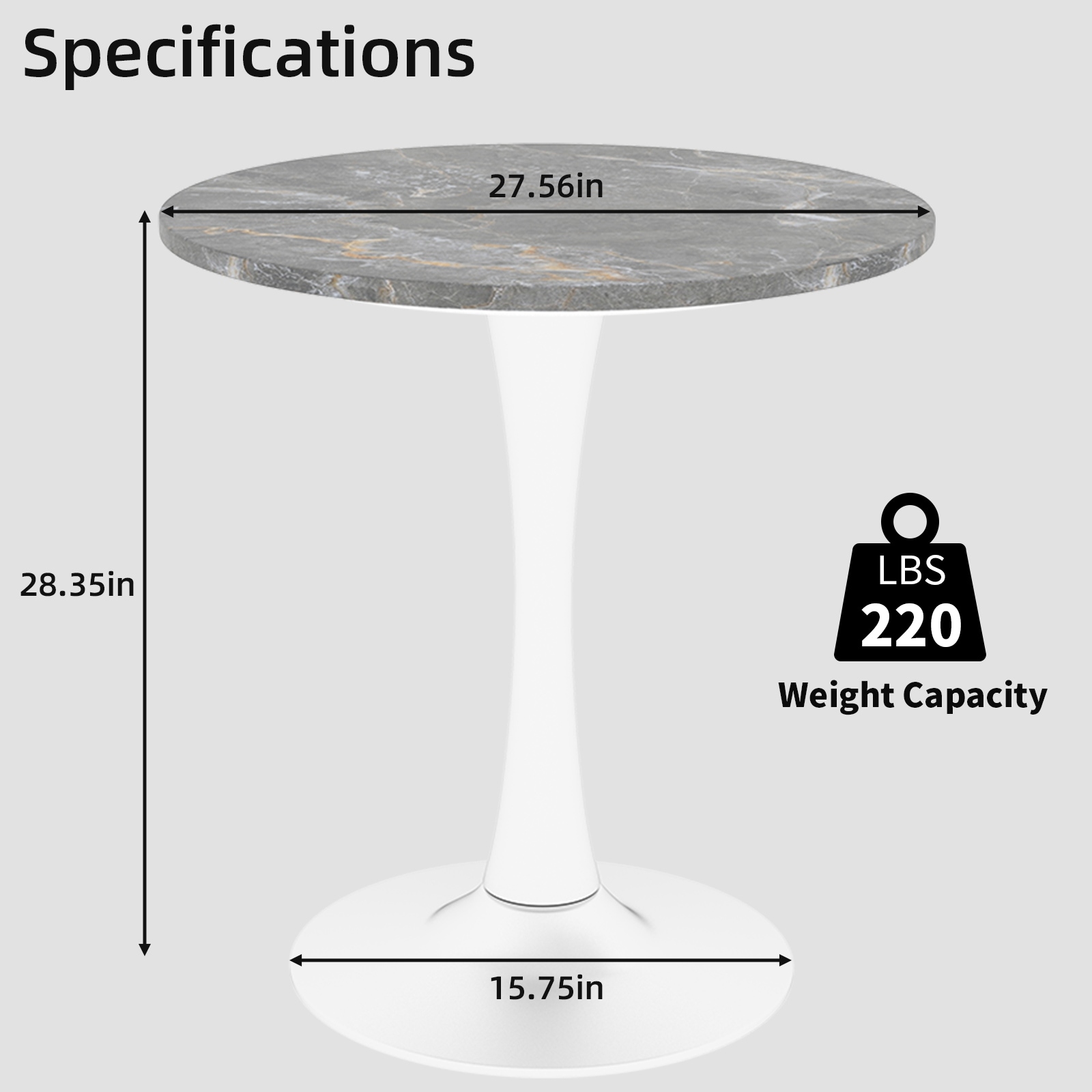 27.6-inch white coffee table, mid-century modern style dining table, accommodates 2-4 people