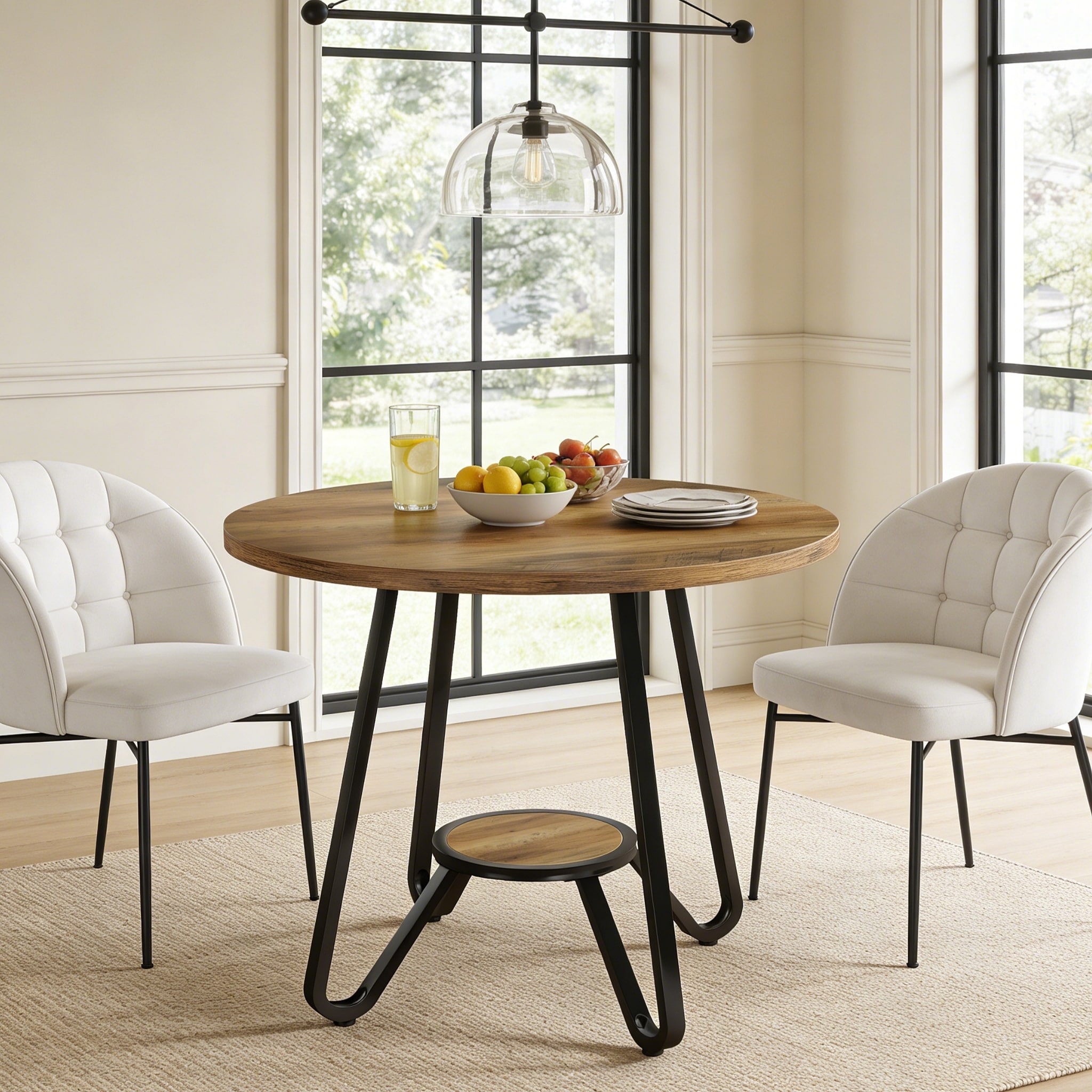 31.5" Round Dining Table for 2, Industrial Small Kitchen Table with Storage Shelves