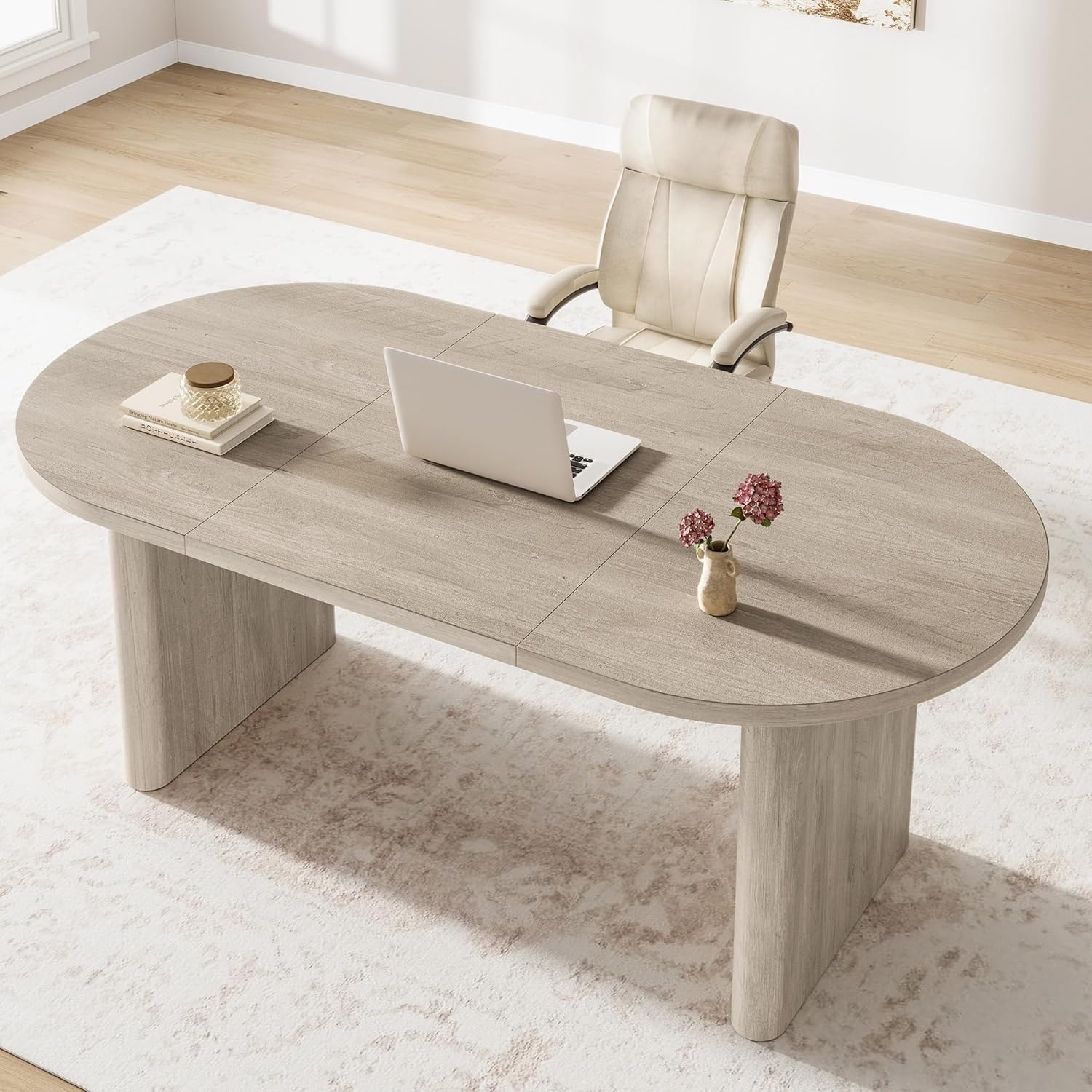70.8" Oval Dining Table for 6-8, Thick Wooden Base