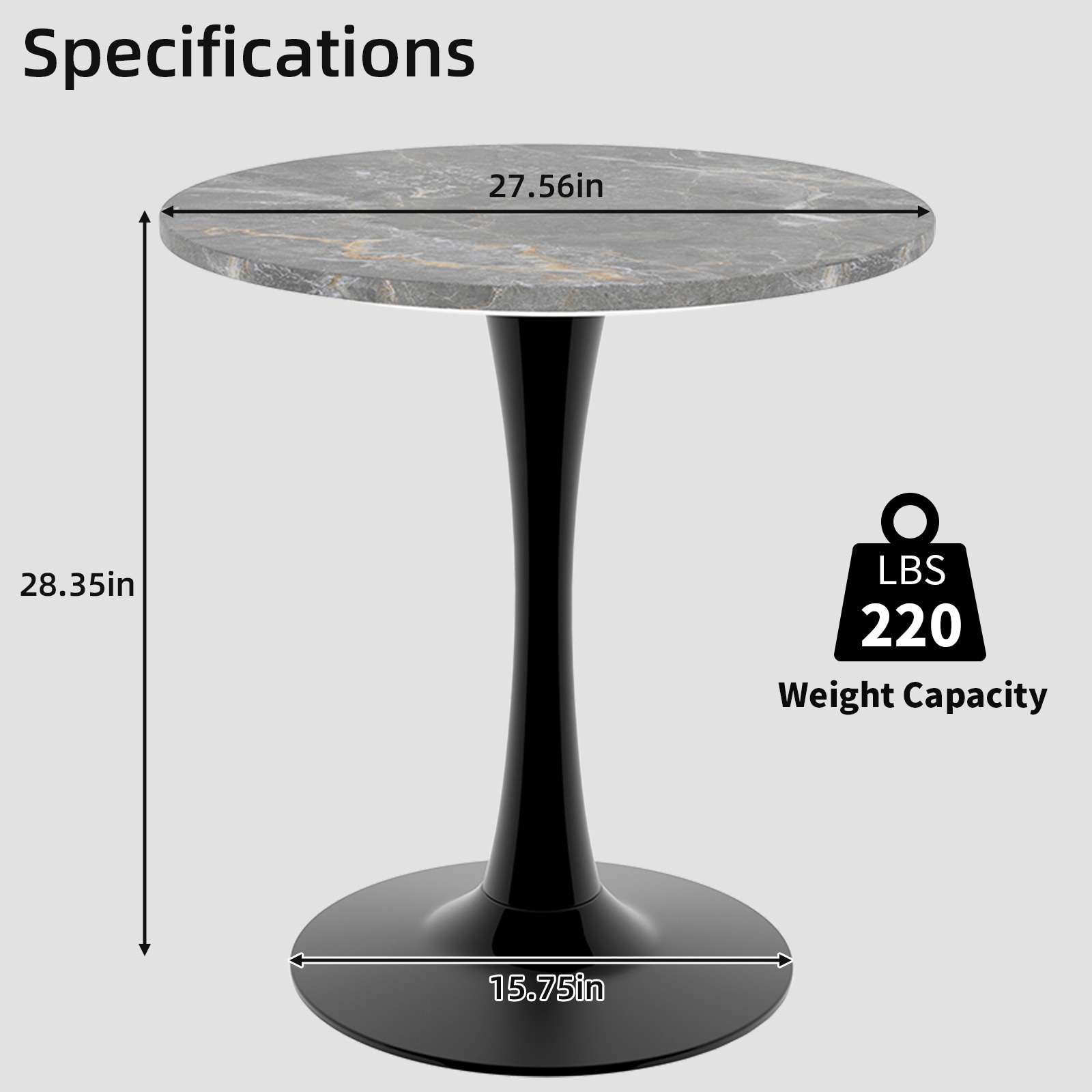 27.6-inch black coffee table, mid-century modern style dining table, accommodates 2-4 people