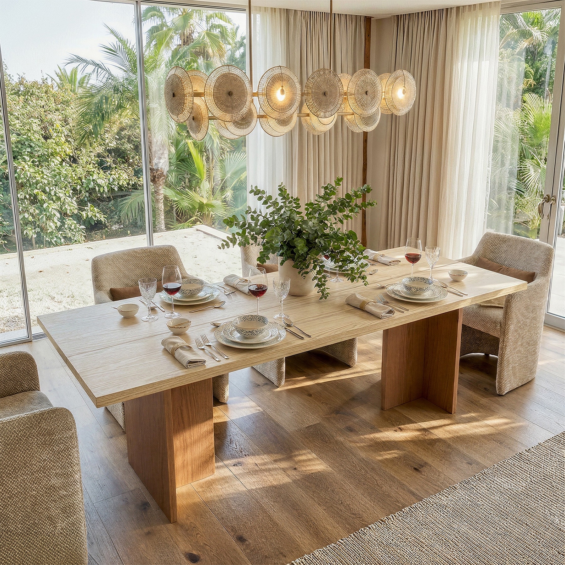 86" Double Pedestal Solid Wood Dining Table