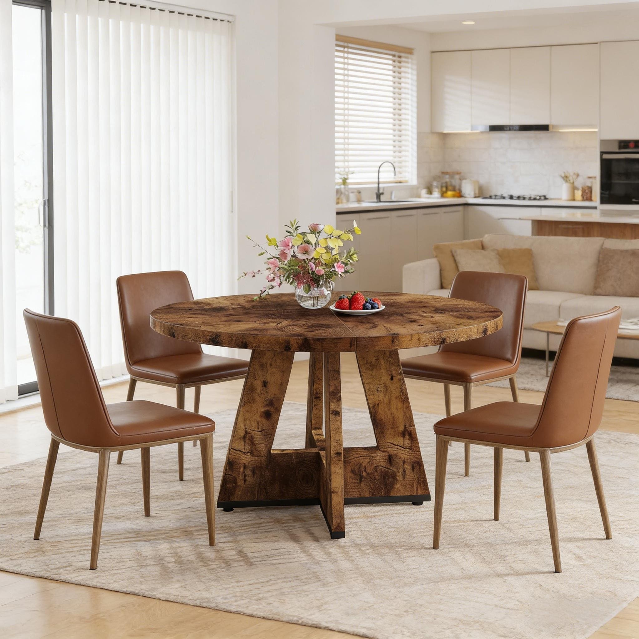 Solid Wood Dining Table with 23 Inch Tempered Glass Lazy Susan