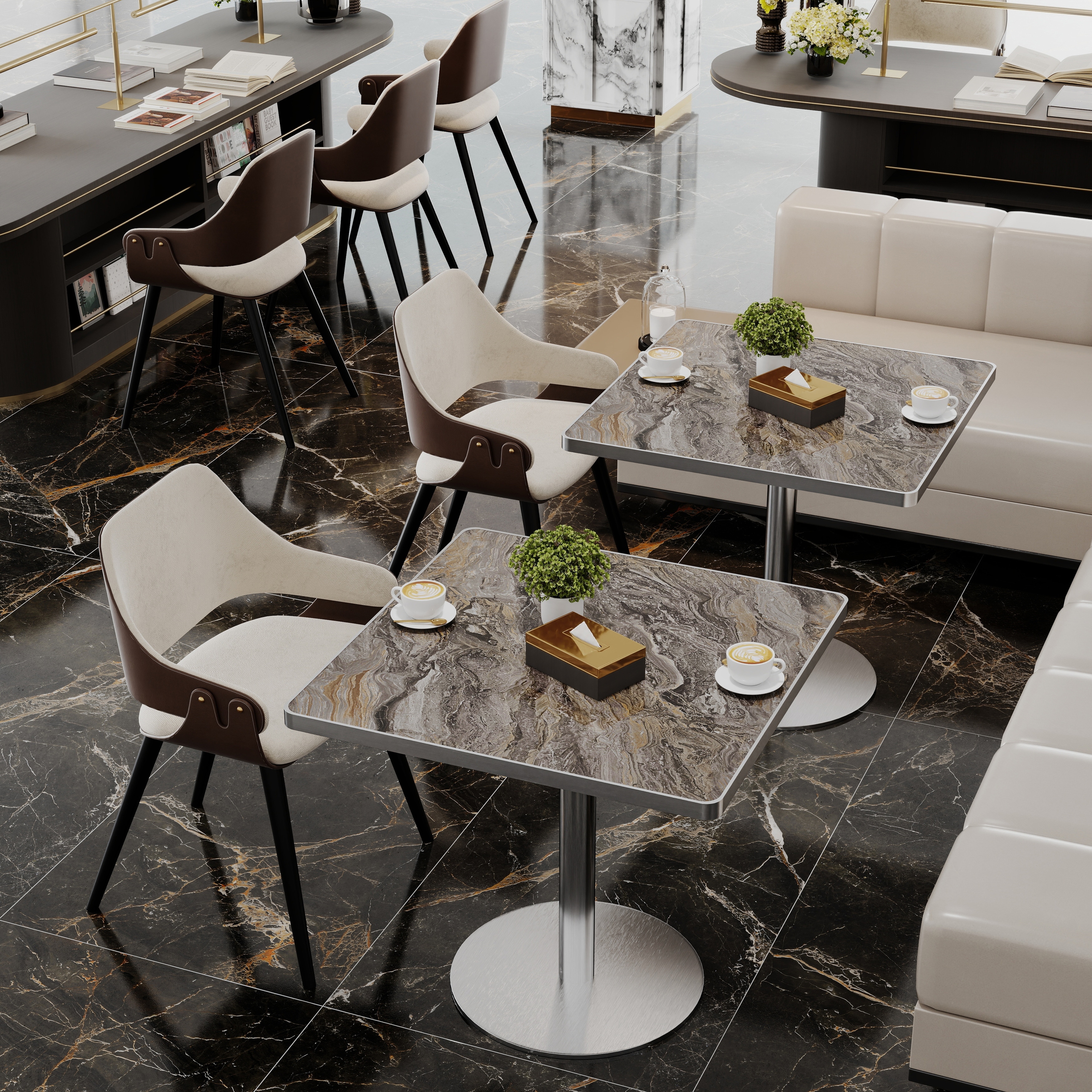 Square Modern Dinning Table 31.5 inches Bistro Table Tulip Table with Faux Marble top (Not Including Chair) - Light Slate Grey