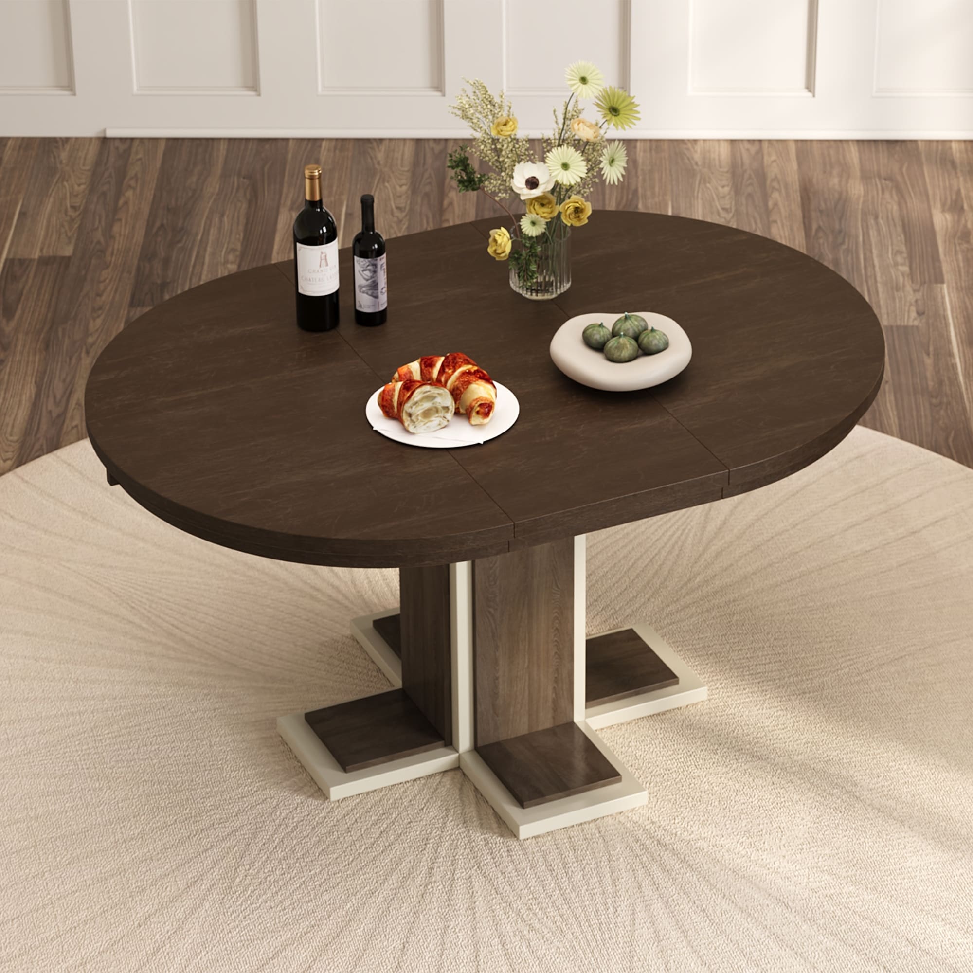 Extendable Dining Table with a 16-inch Middle Leaf, 42''-58'' Oval Dining Table for 6, Retro Solid Wood Round Dining Table with