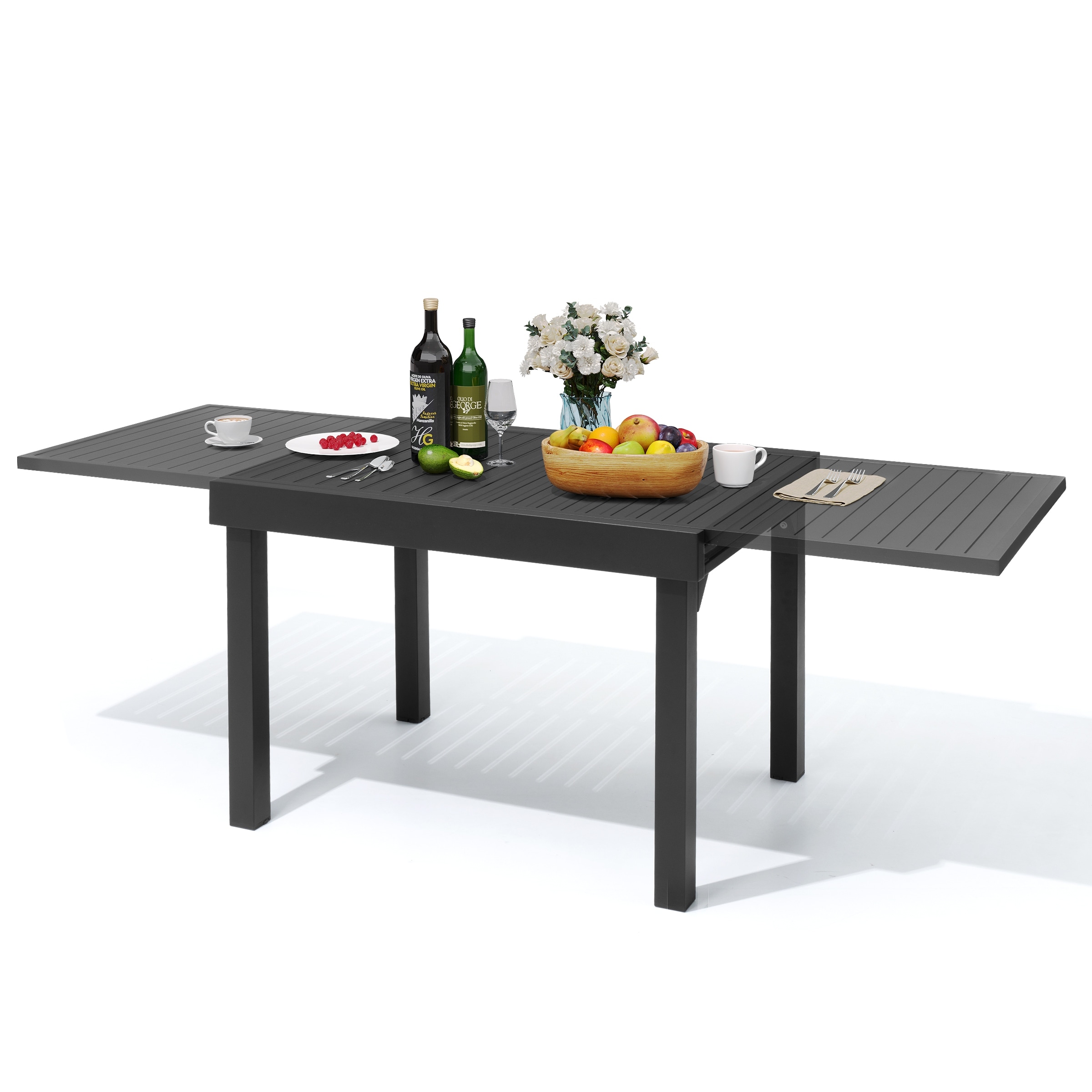 Outdoor Expandable Aluminum Dining Table with Leaf Extension
