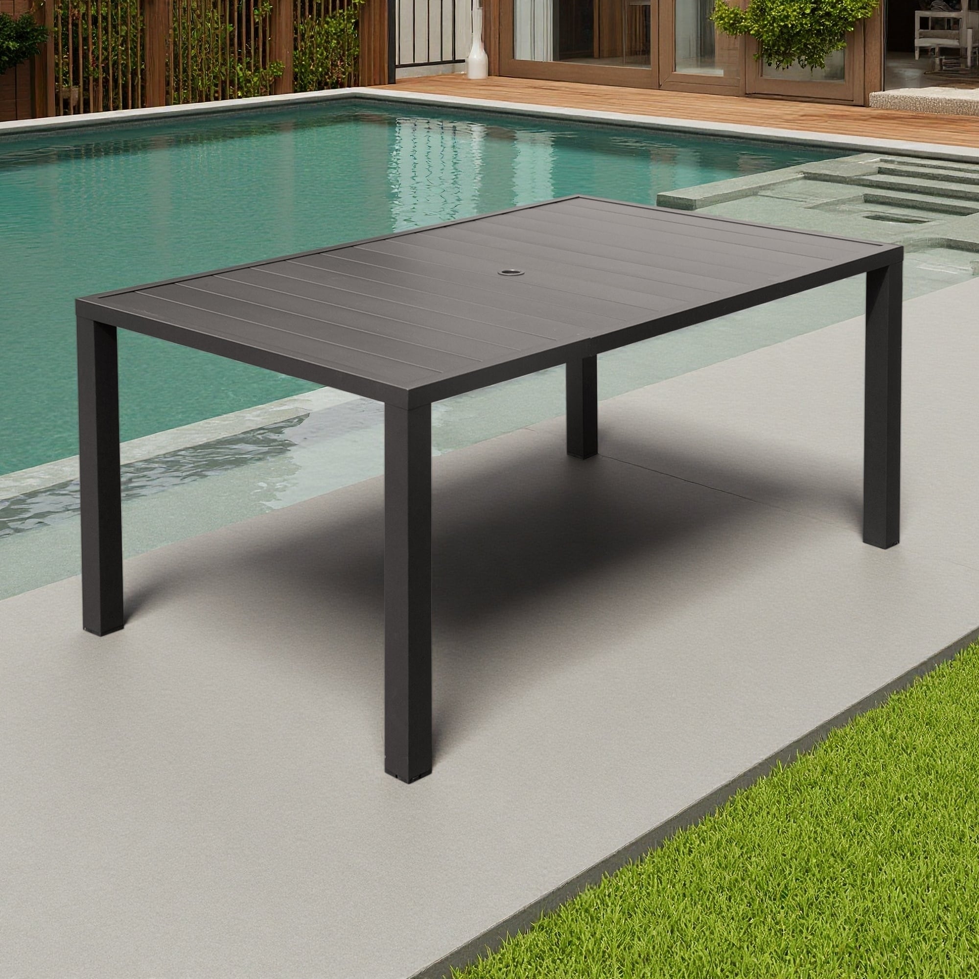 Outdoor Square Dining Table with Smart Slatted Tabletop and Umbrella Hole for 6 Person