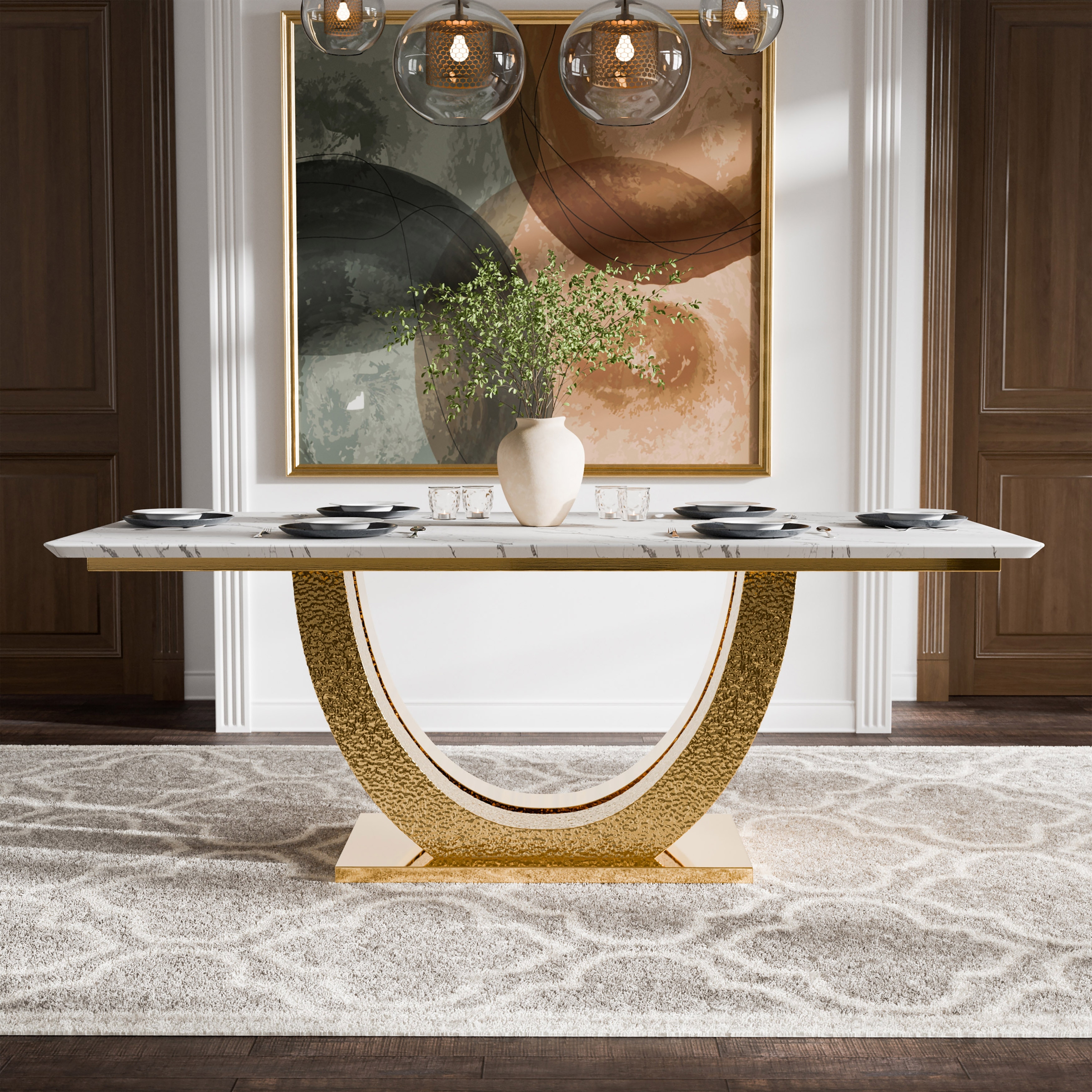 Modern Artificial Marble Dining Table Metal Base Dining Table