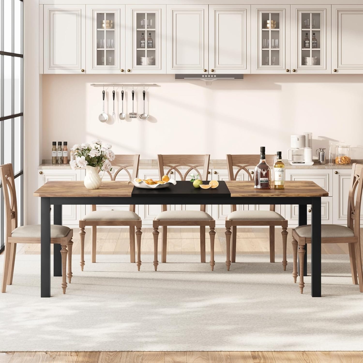 Farmhouse Dining Table with Heavy Duty Metal Legs for 6-8 People