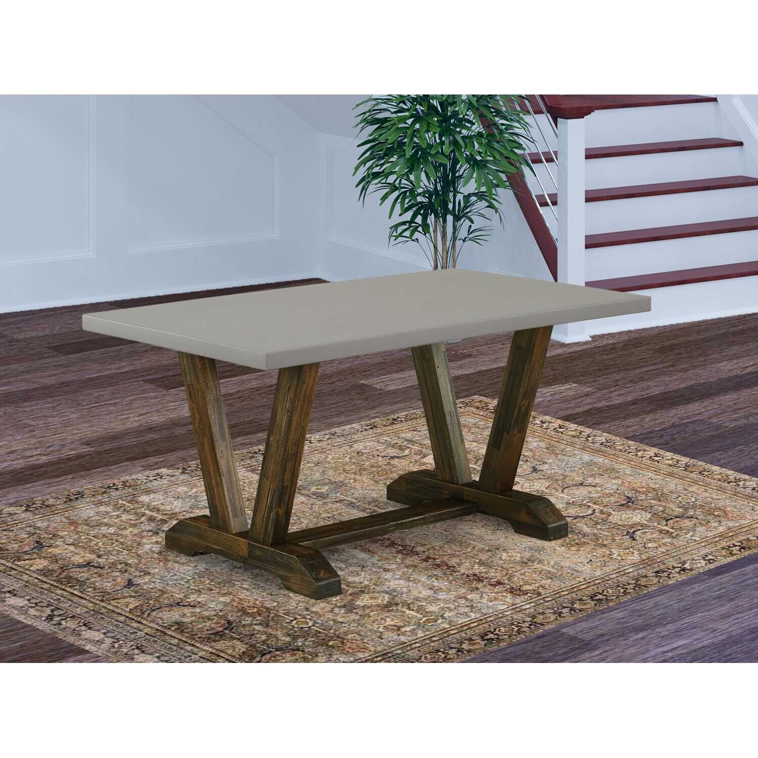 Rectangular Dining Table 36x60 Inch - Cement Top with Distressed Wood Legs for Elegant Dining Rooms - 36