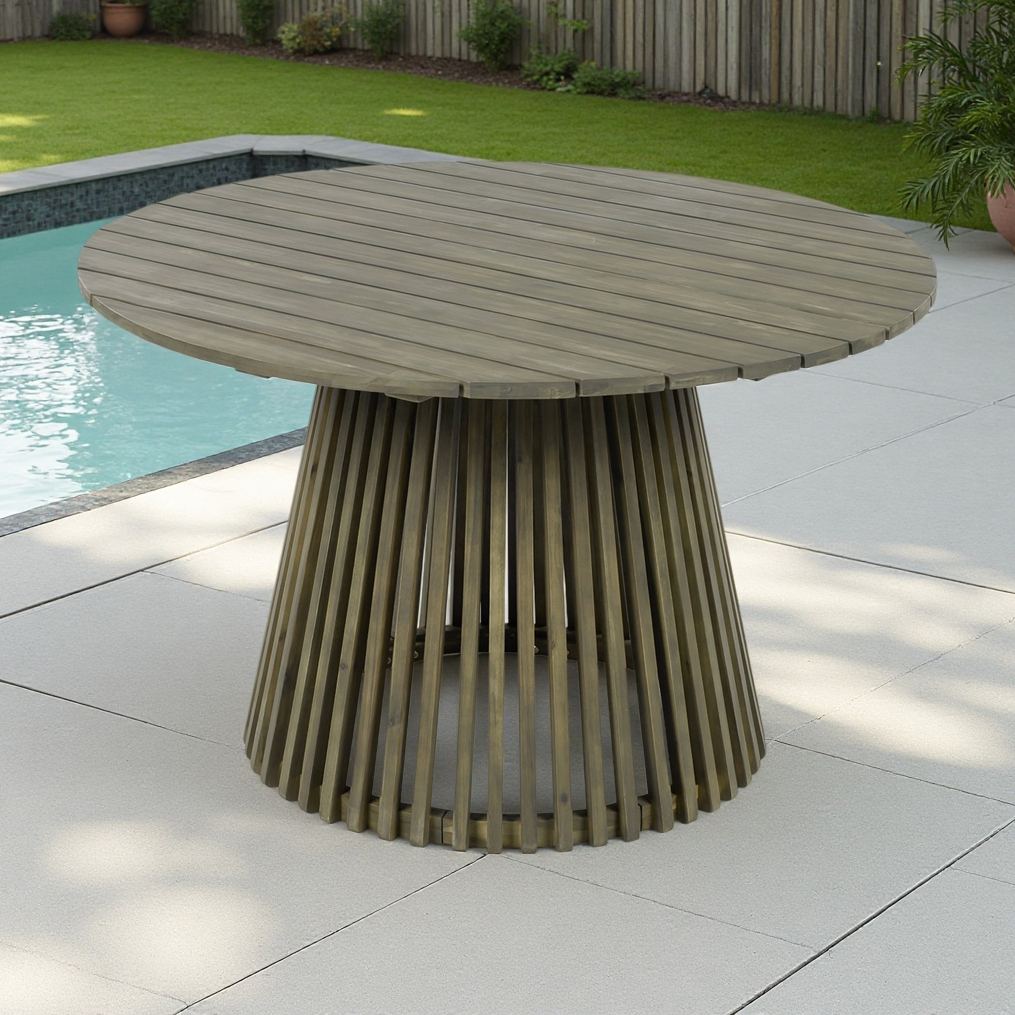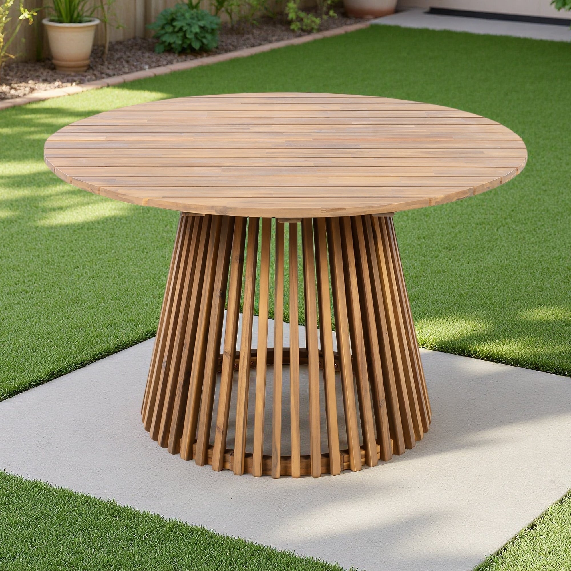 Outdoor Acacia Wood Patio Dining Table with Round Top for Backyard, Lawn