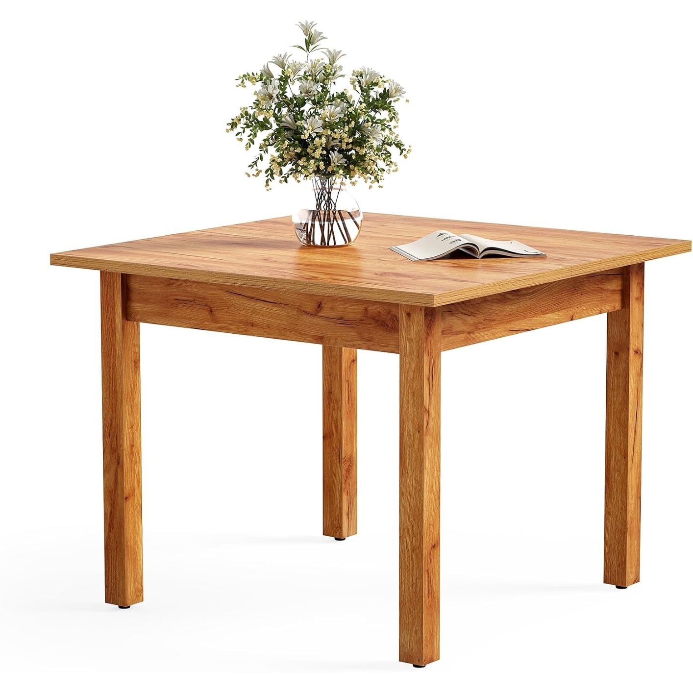 39-Inch Square Dining Table for 4, Brown Wooden Kitchen Table, Modern Oak Finish for Living Room