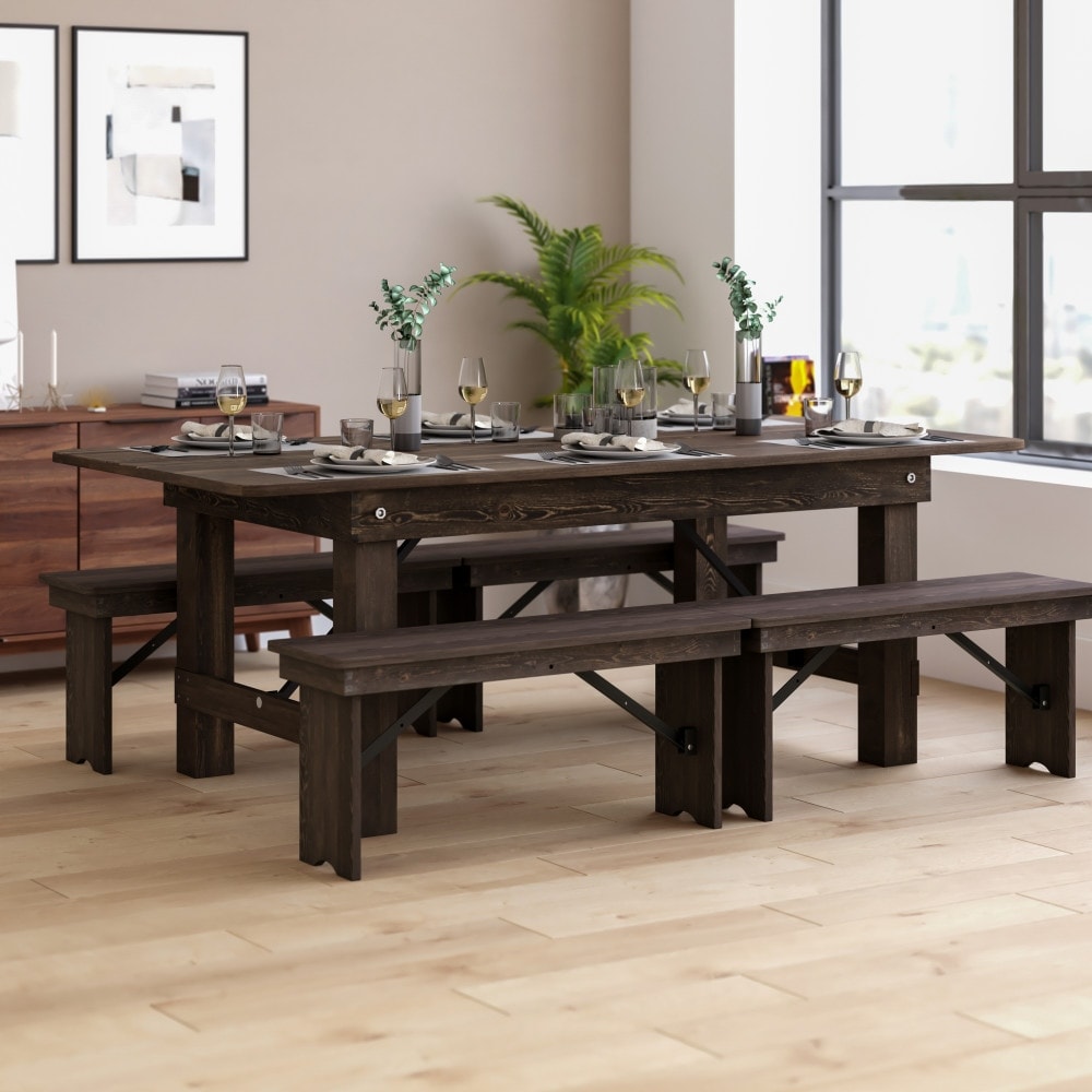 Farmhouse Cross Beam Frames Wooden Dining Table