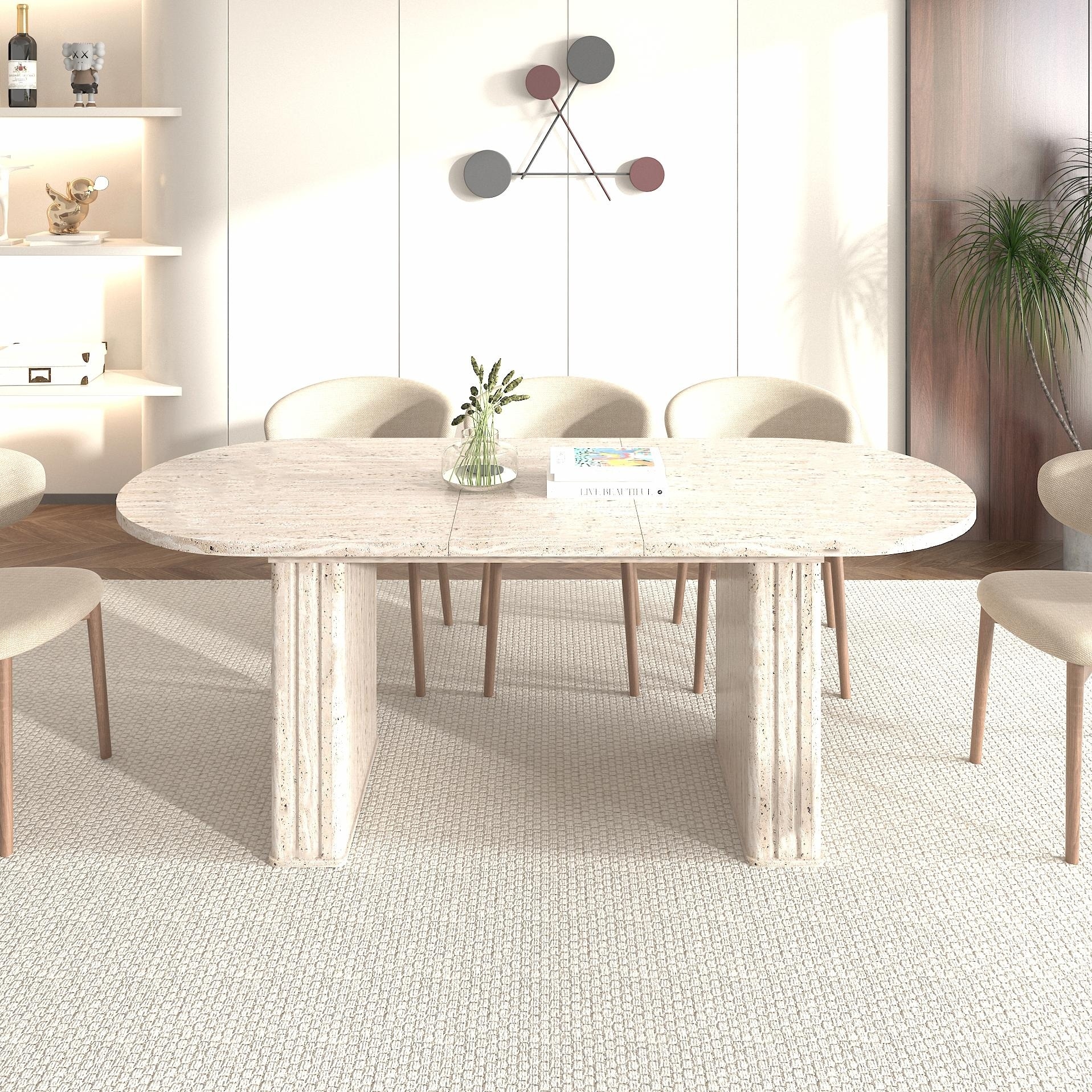 Oval Extendable Dining Table for 4-8 - Travertine