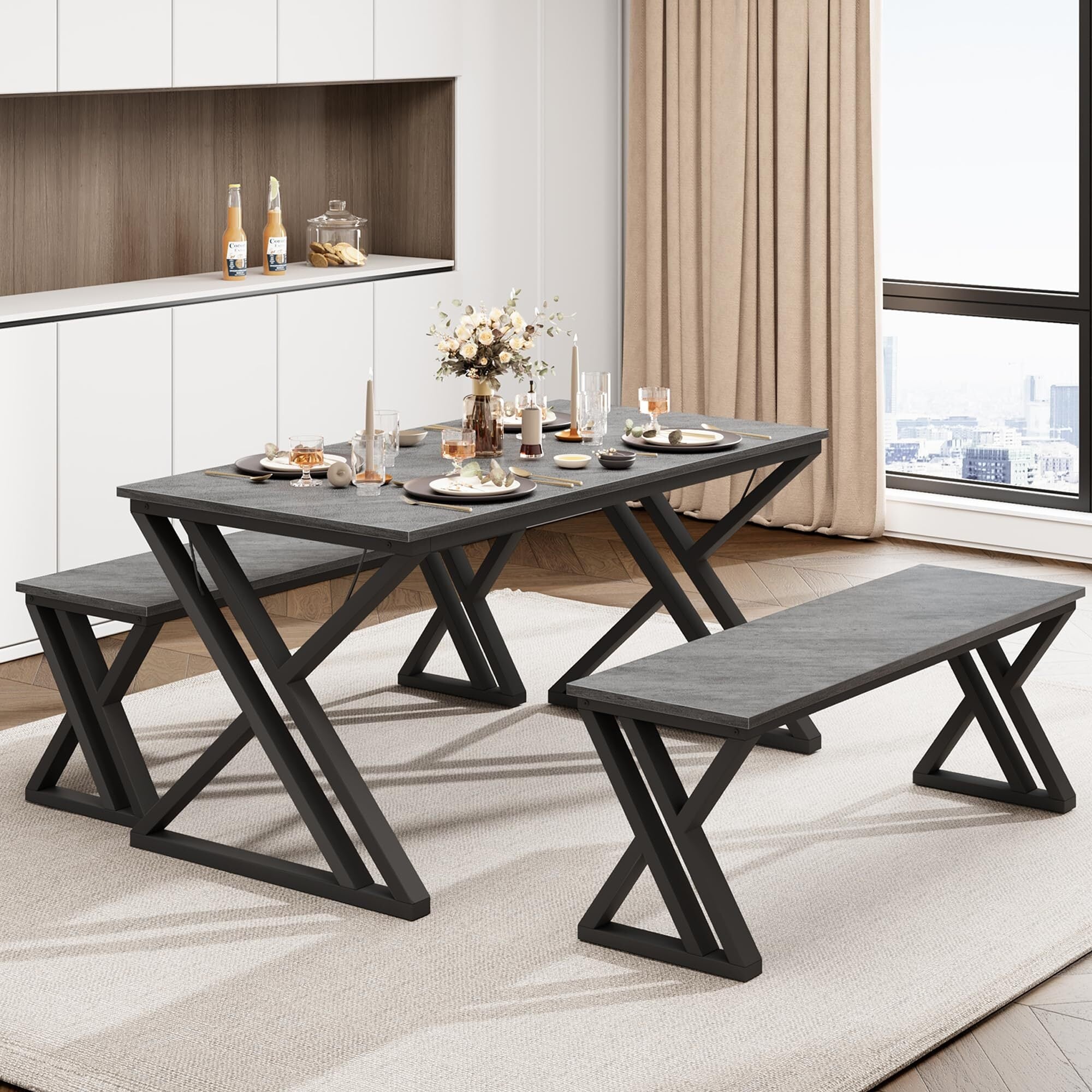 Kitchen Table with Benches - Dining Table Set for 4 Sturdy