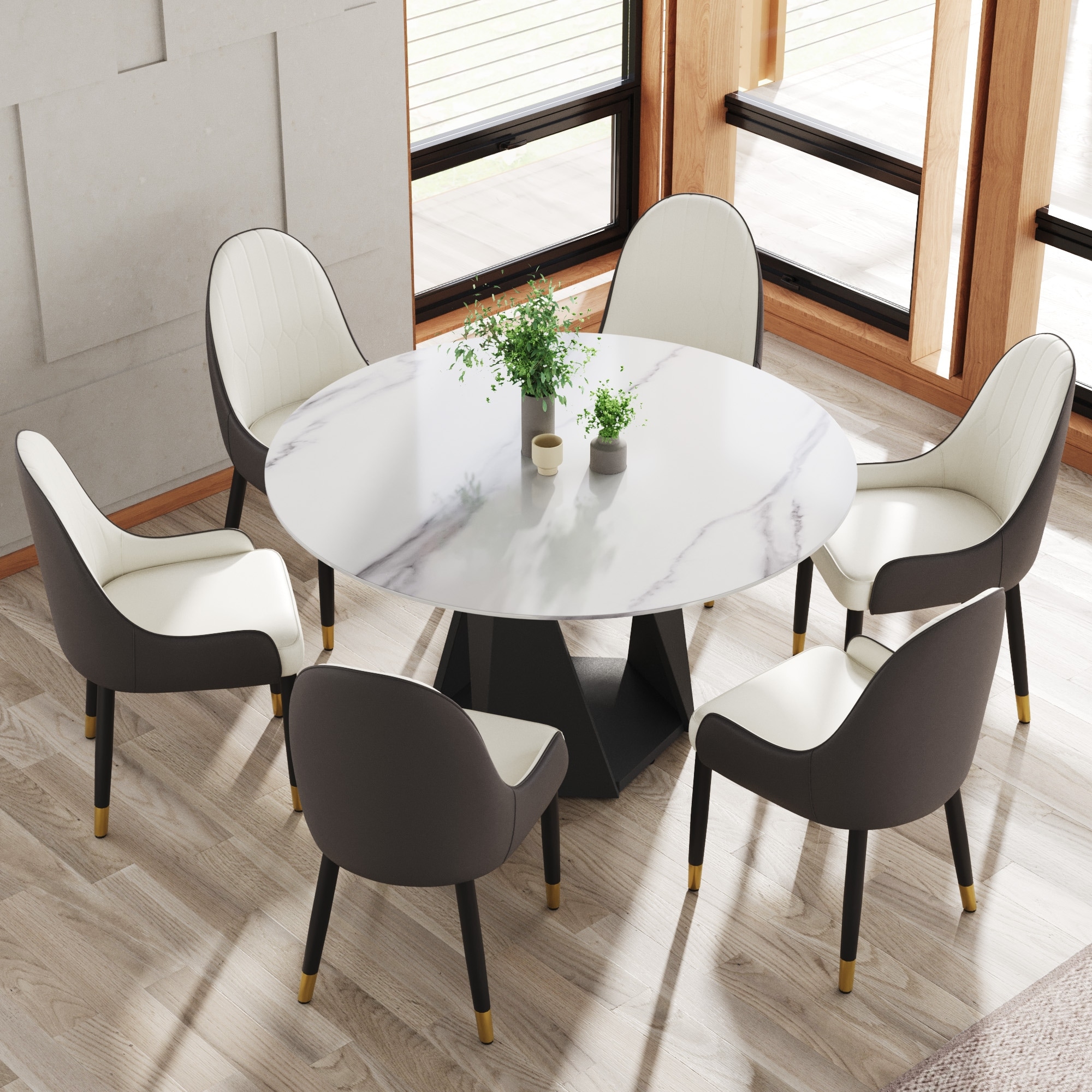 53.15" Round Artificial Marble Dining Table with Iron Metal Base for 6 People(Dining Table Only)