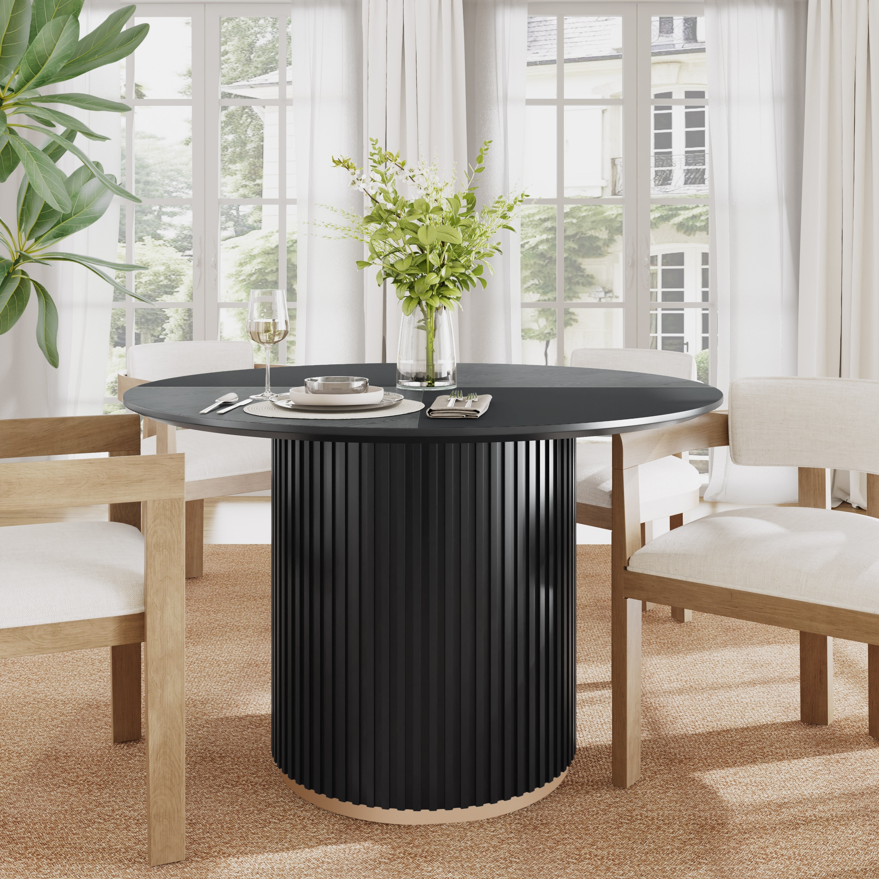 47.2" Solid Wood Round Dining Kitchen Table with Intersecting Pedestal Base