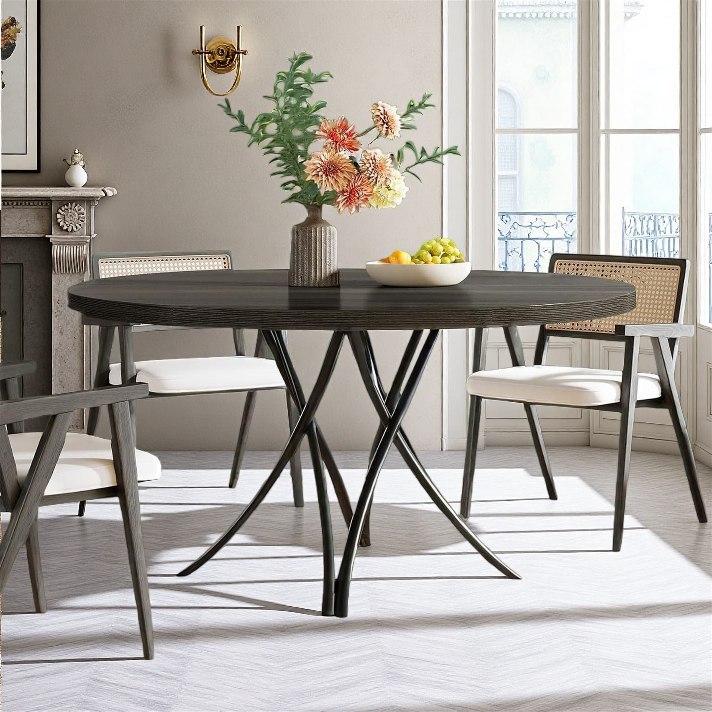 Round Dining Table with Cross Legs, Adjustable Foot Pads, 47" Diameter