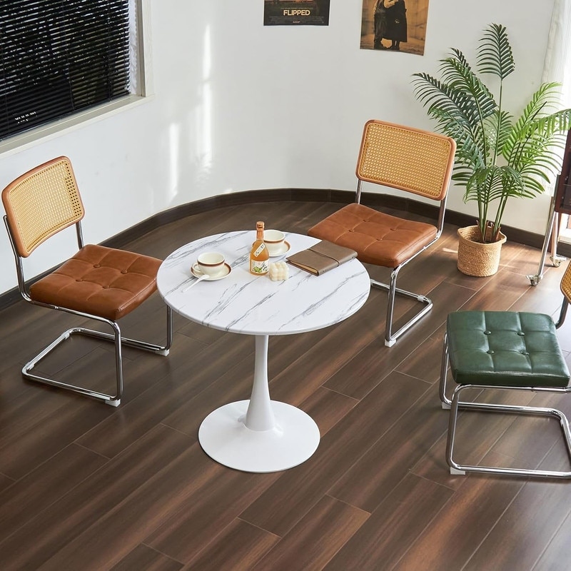 Round 31.5" Wood Grain Mid-Century Modern Dining Table