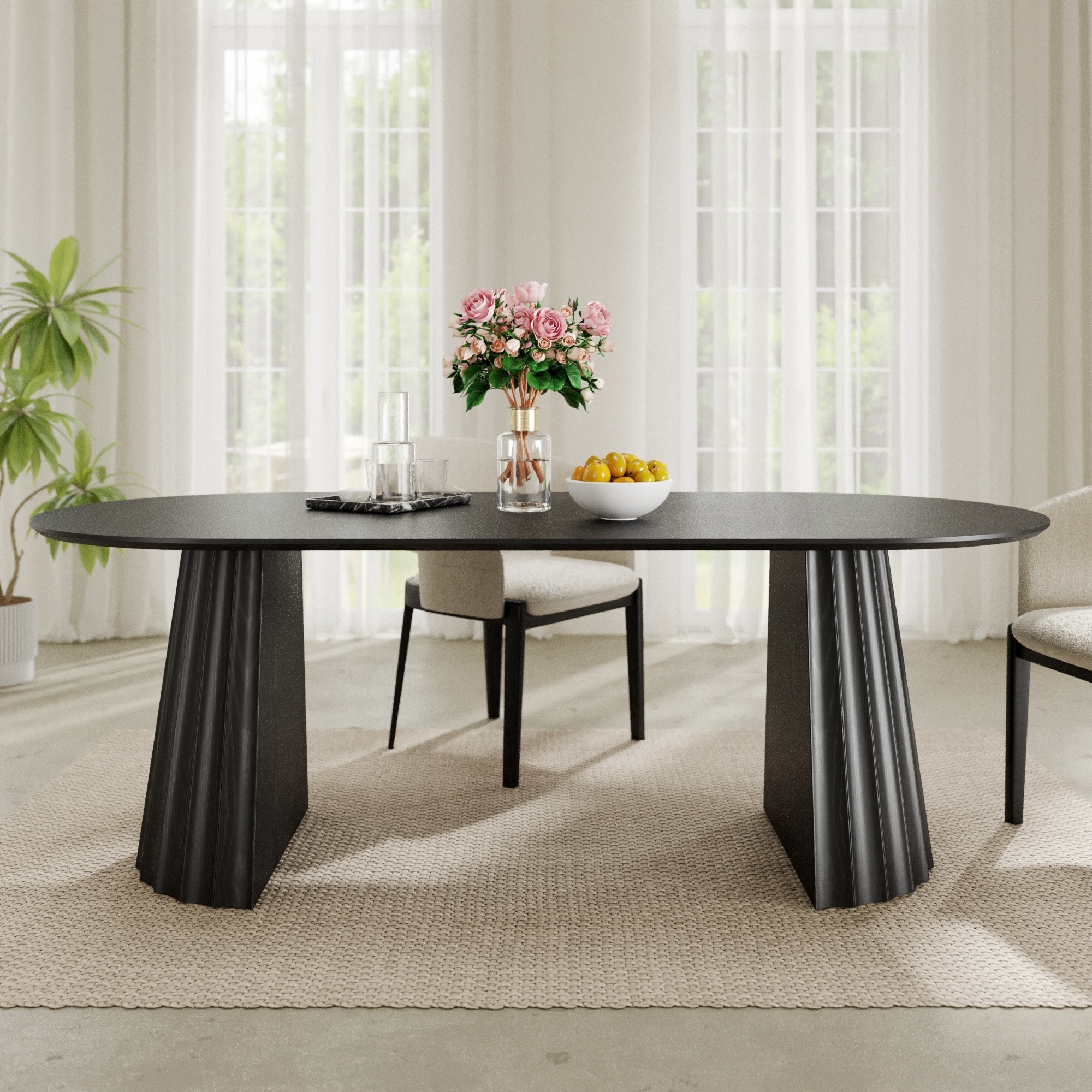Modern Oval Wooden Dining Table - 79" Large Size, Sturdy Fluted Base, Natural Oak Finish for Dining Room