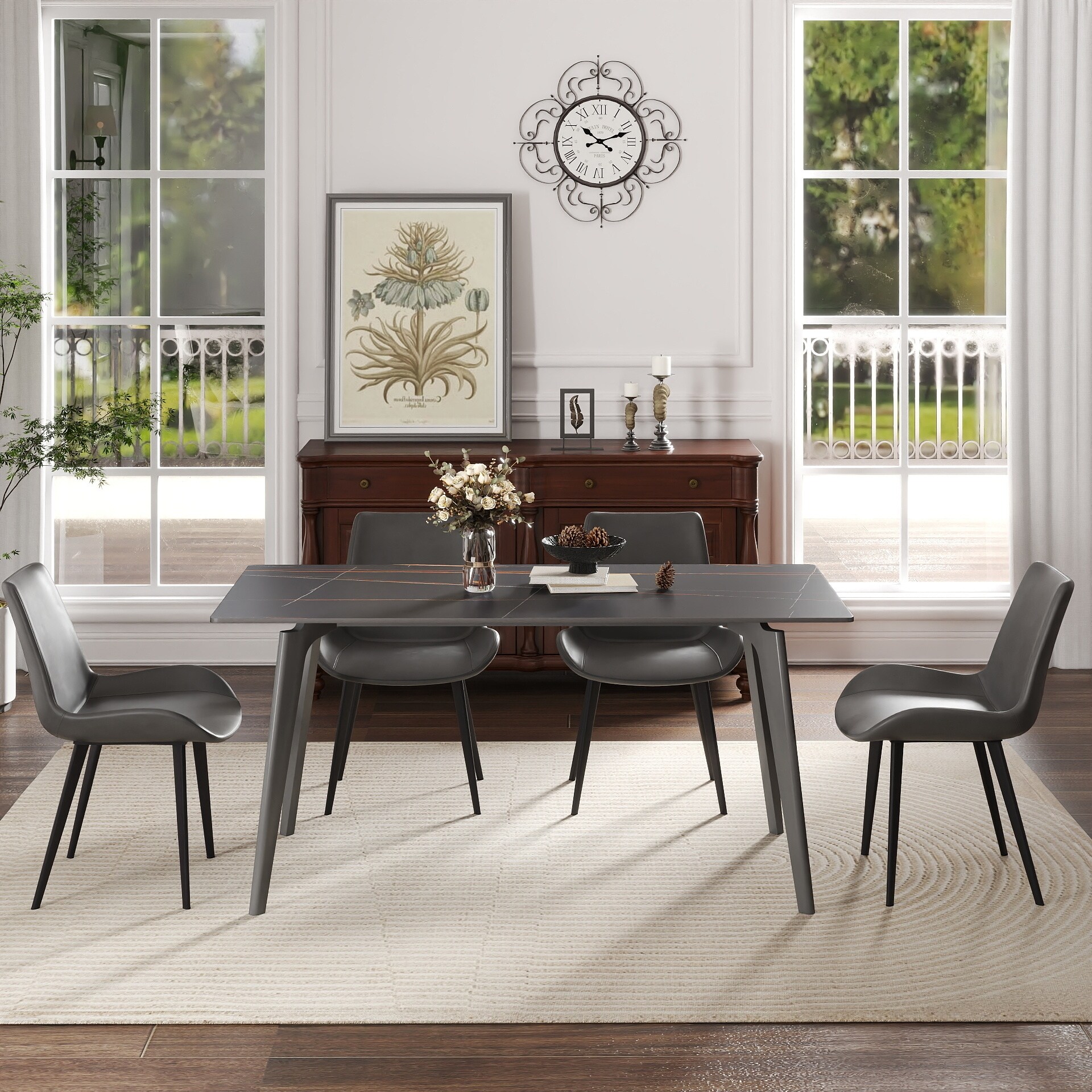 63in Dining Table for 4 Kitchen & Dining Room Table, Modern Sintered Stone Table with Metal Legs