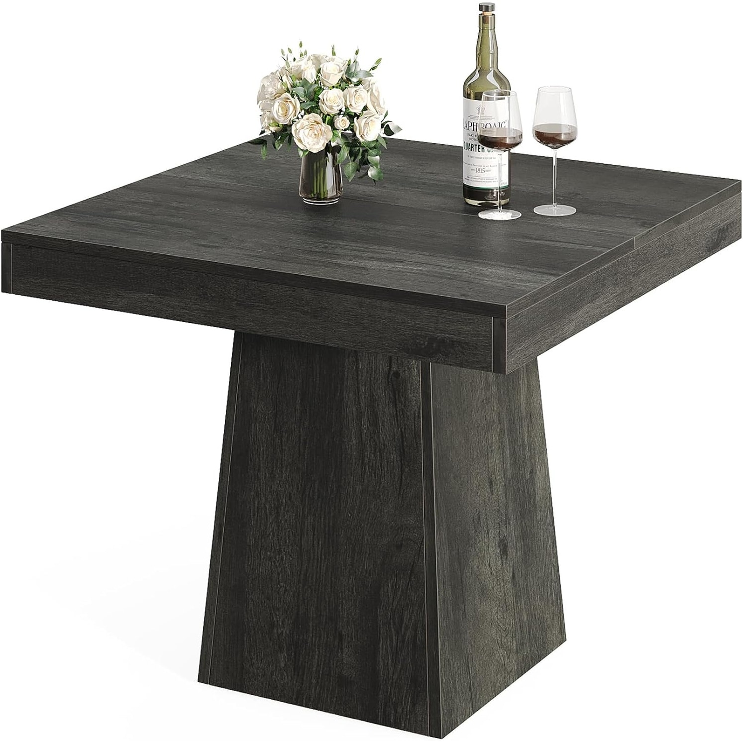 Rustic Farmhouse Square Dining Table Grey Wood for 4 People Sturdy Wooden Table for Kitchen and Living Room