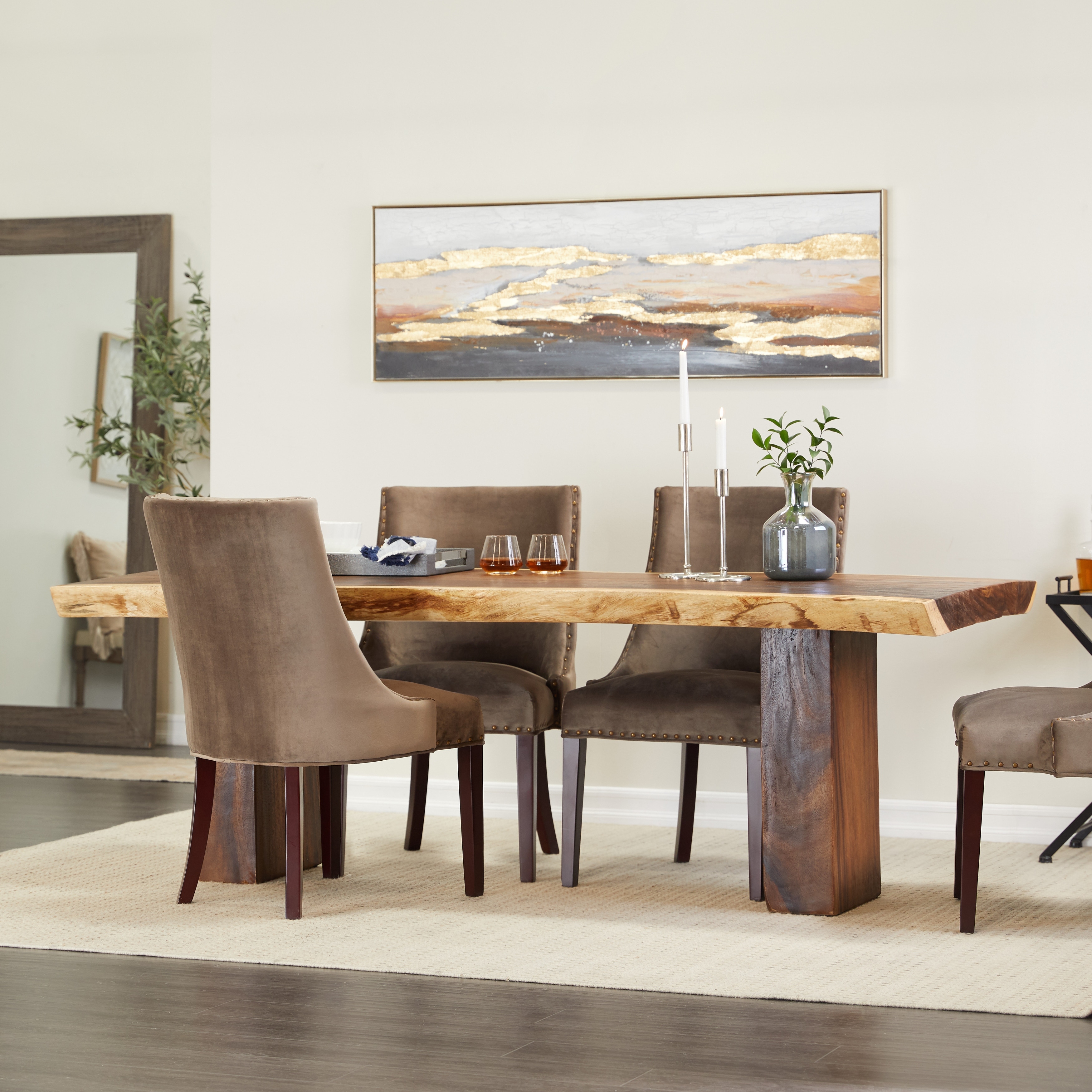 Light Brown Wood Handmade Live Edge Dining Table with Block Style Base