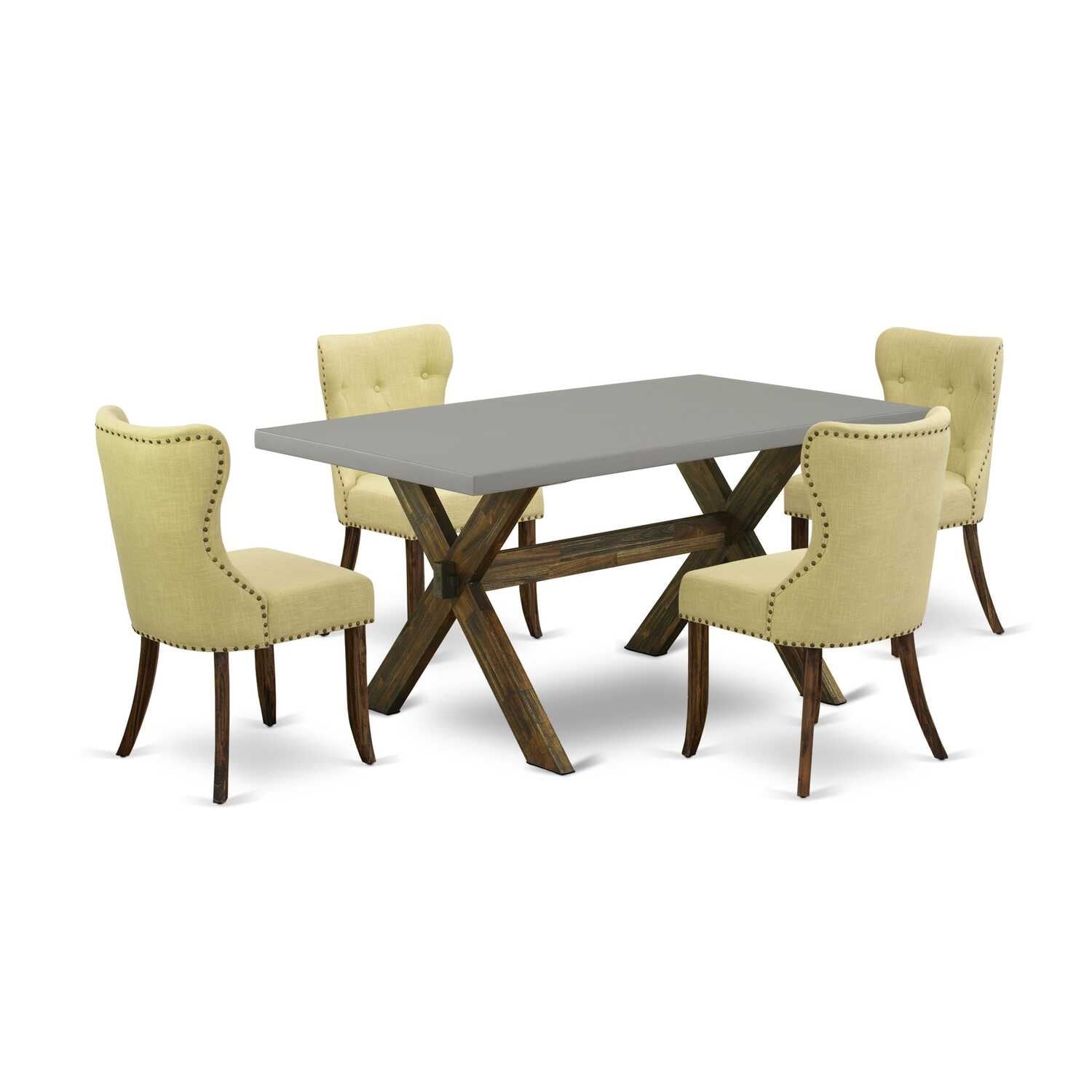 Modern 5-Piece Dining Set - Kitchen Table with 4 Parson Chairs - Linen Fabric & Tufted Back - 60