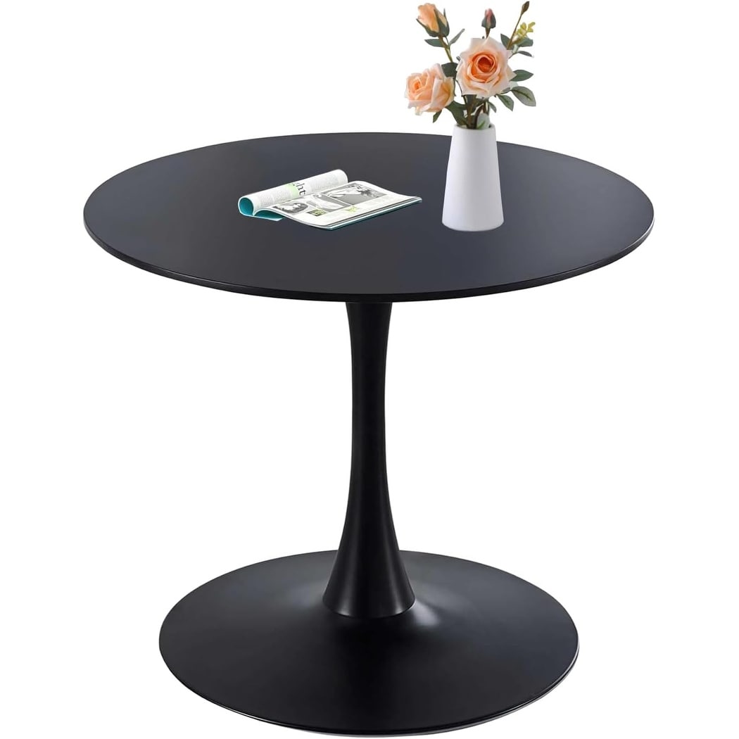 Round Black Dining Table with Pedestal Base, 31.5 Inch, Mid-Century Design for Kitchen and Living Room