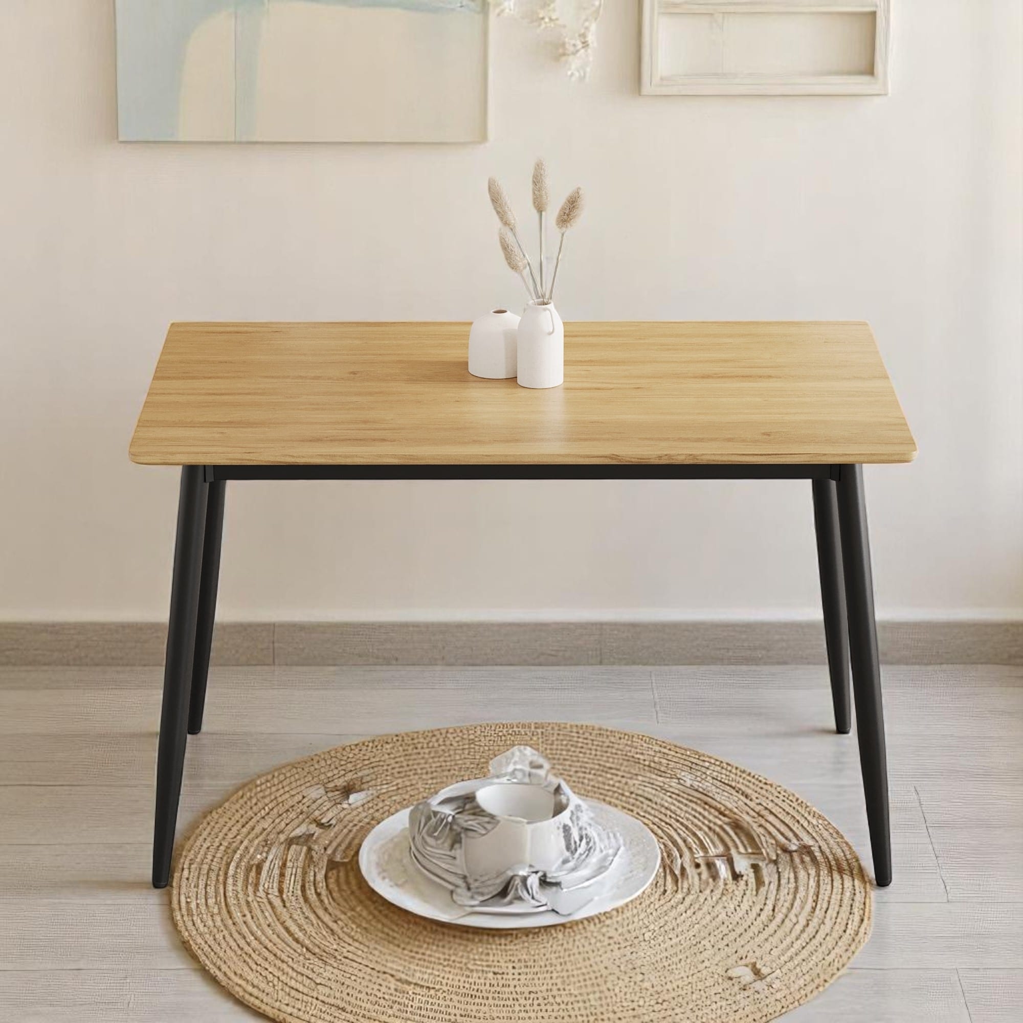 Dining Table for 4-6, 47" MDF Grain Table Top with Black Metal Legs, Space-Saving Kitchen Table, Easy Assembly, Coffee Table