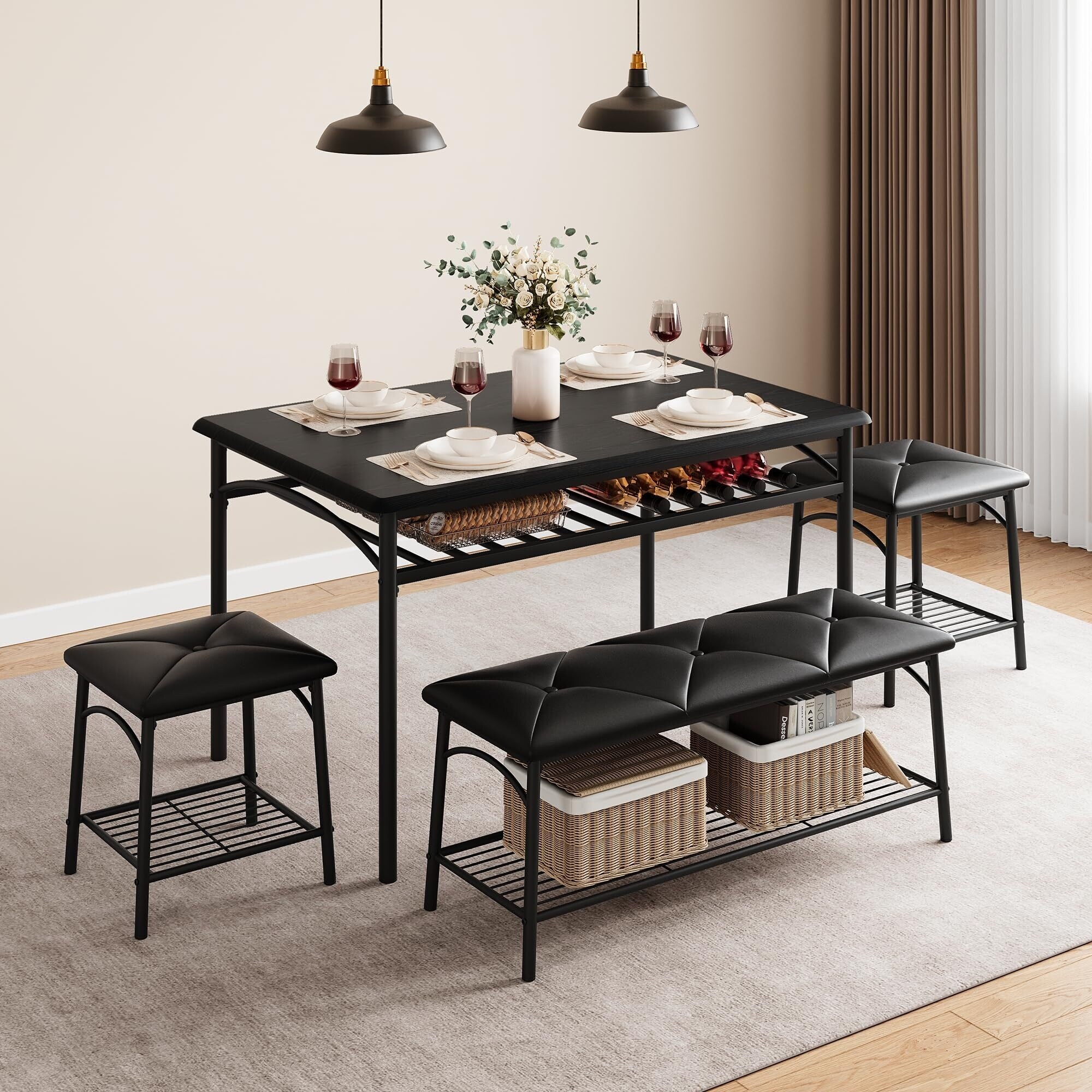 Dining Table Set for 4 with Upholstered Bench for Dining room