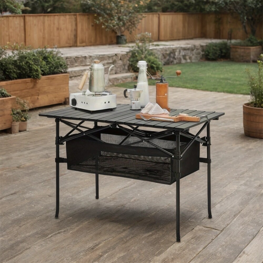 Adjustable Height Folding Table with Storage Bag,Metal Tripod Base