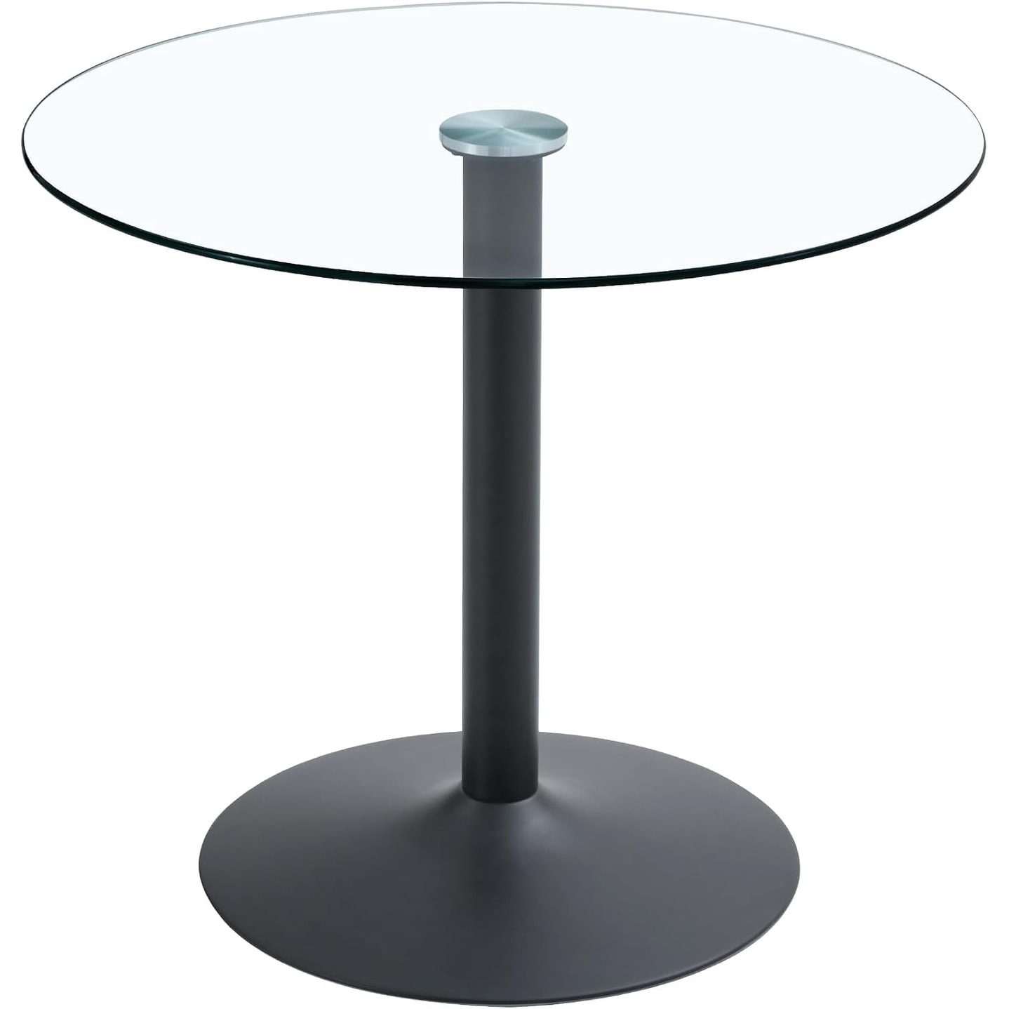 35 Inch Round Tempered Glass Dining Table with Sturdy Black Metal Base for Kitchen, Home, or Cafe - 35'' Black Table