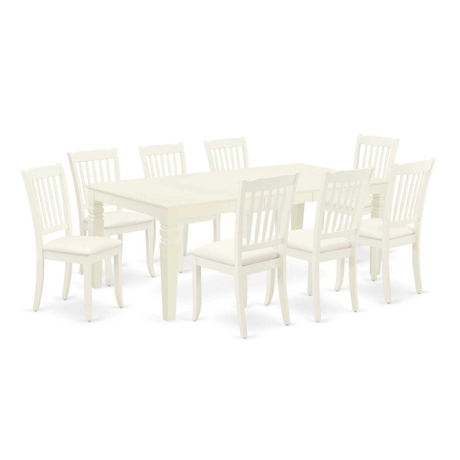 Modern 9Pc Dining Set - Rectangle Table & 8 Linen Chairs - White Finish - 84