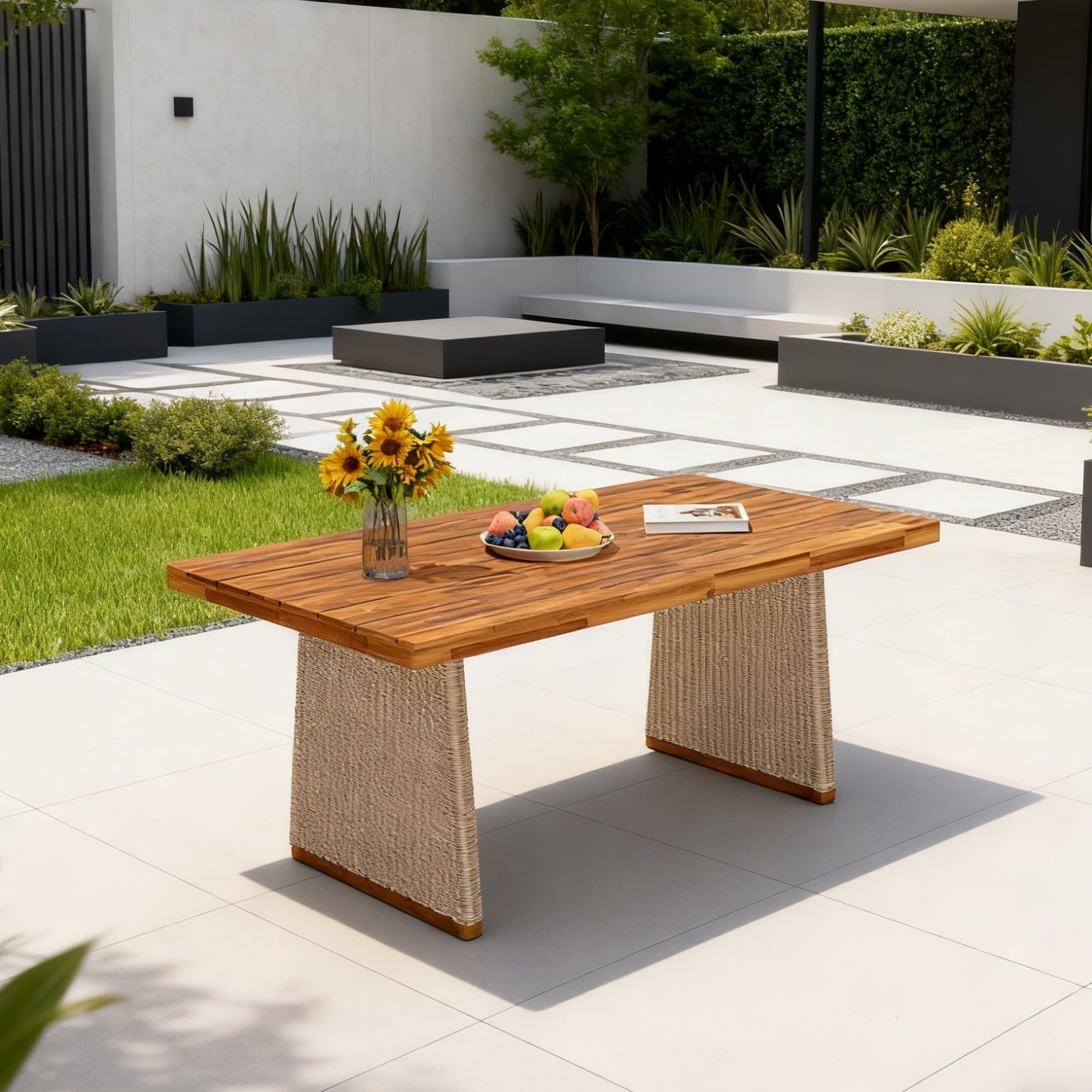 Outdoor Patio Acacia Wood Rectangular Dining Table with Wicker Legs