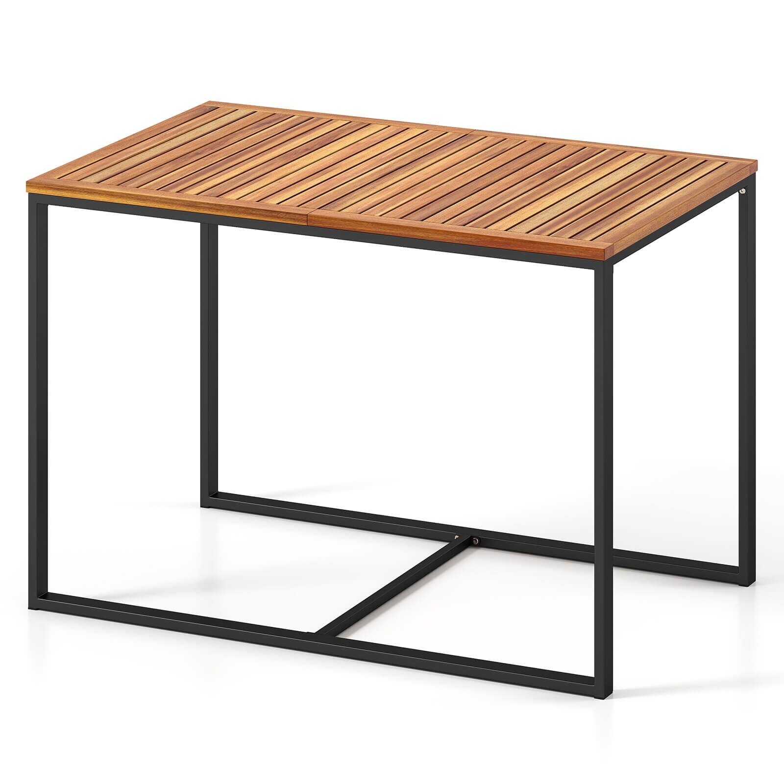 4-Person Acacia Patio Dining Table Rectangular w/Metal Frame