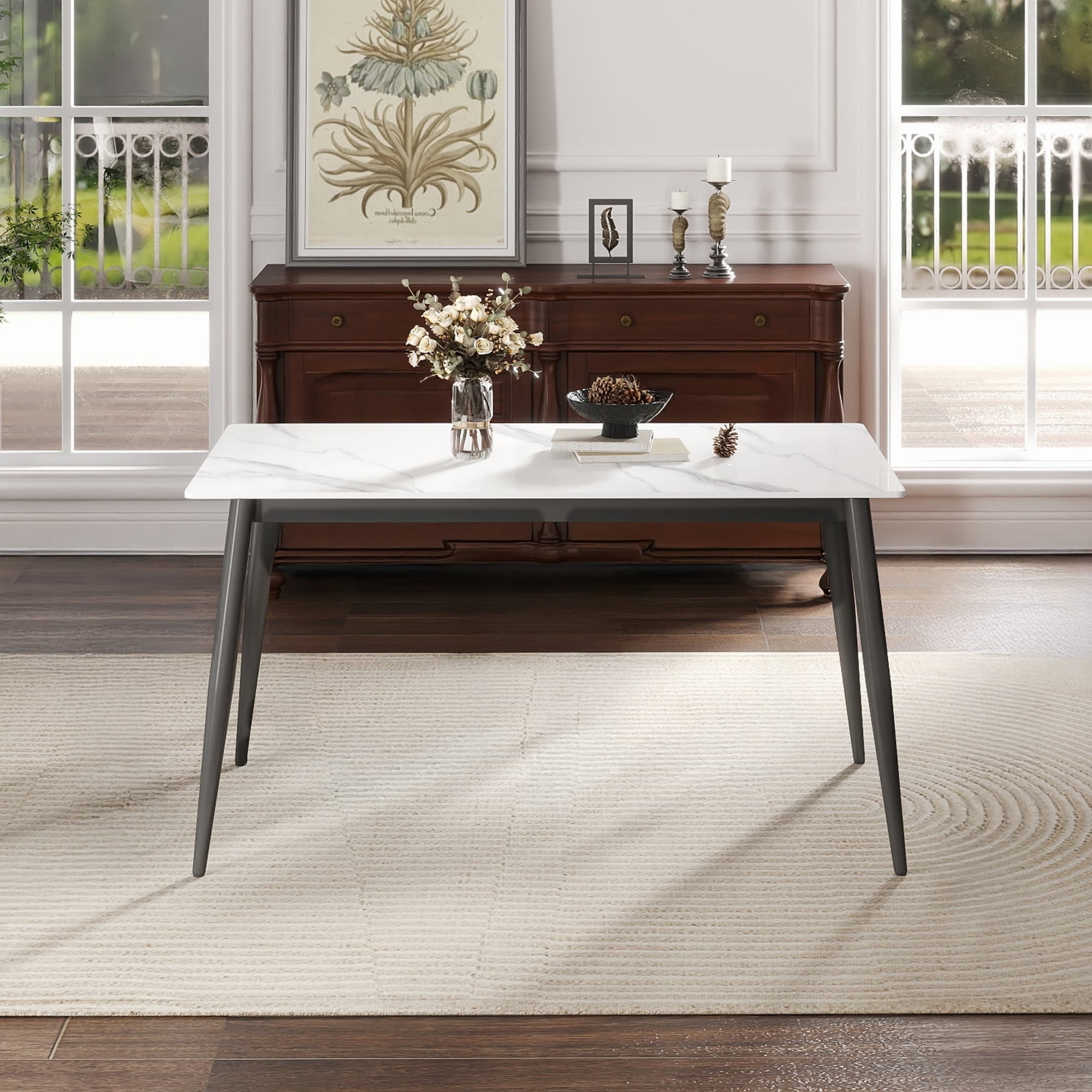 55.12" Artificial Stone White Straight Edge(Dining Table Only)