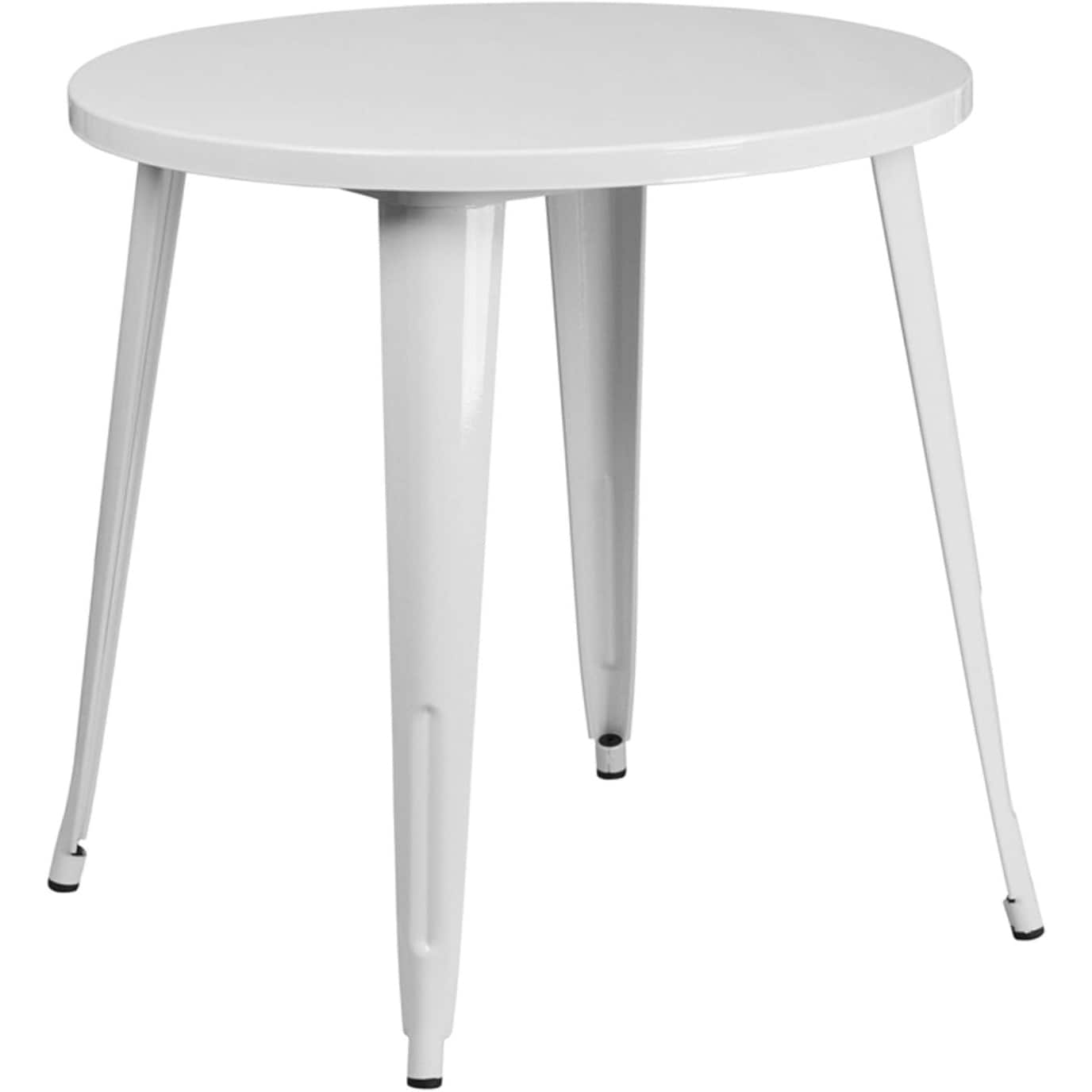 30 Inch Round White Metal Indoor-Outdoor Table for Commercial and Residential Use