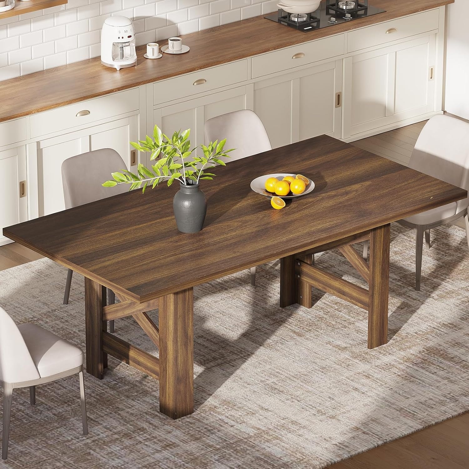 Farmhouse Wooden Dining Table for 6-8, 71" Long Kitchen Table with Sturdy Frame & Triangular Legs, for Home Office