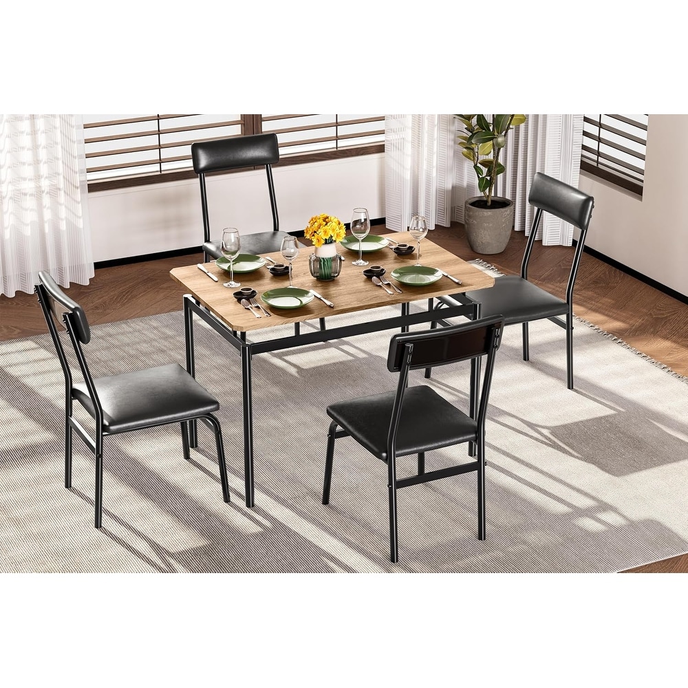 5 Piece Dining Table Set for 4, Small Industrial Kitchen Table with PU Padded Chairs - N/A