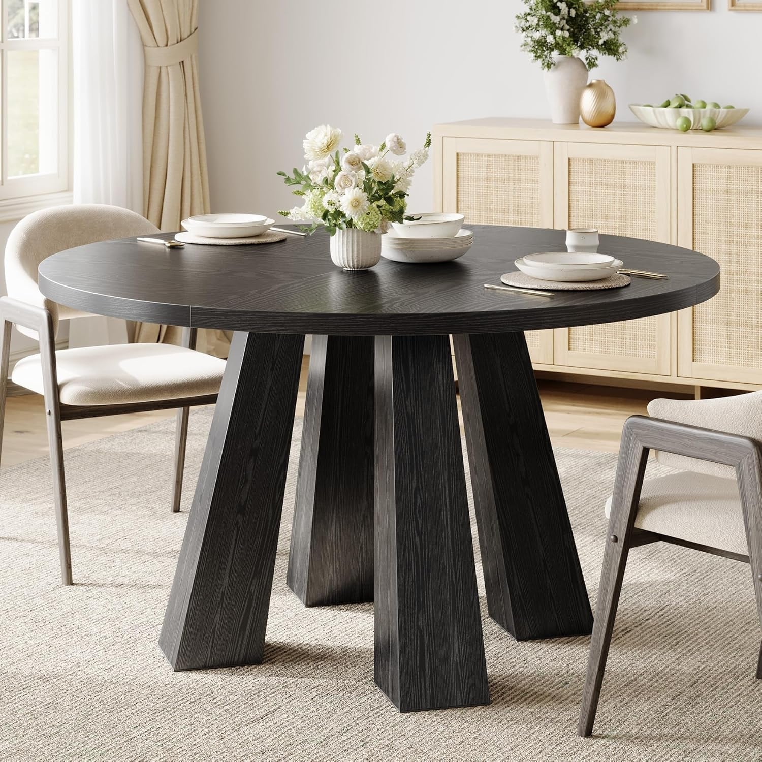 Dining Table for 4, 47 Inch Kitchen Table, Round Dining Room Table with Sturdy Base, Walnut(Table Only)