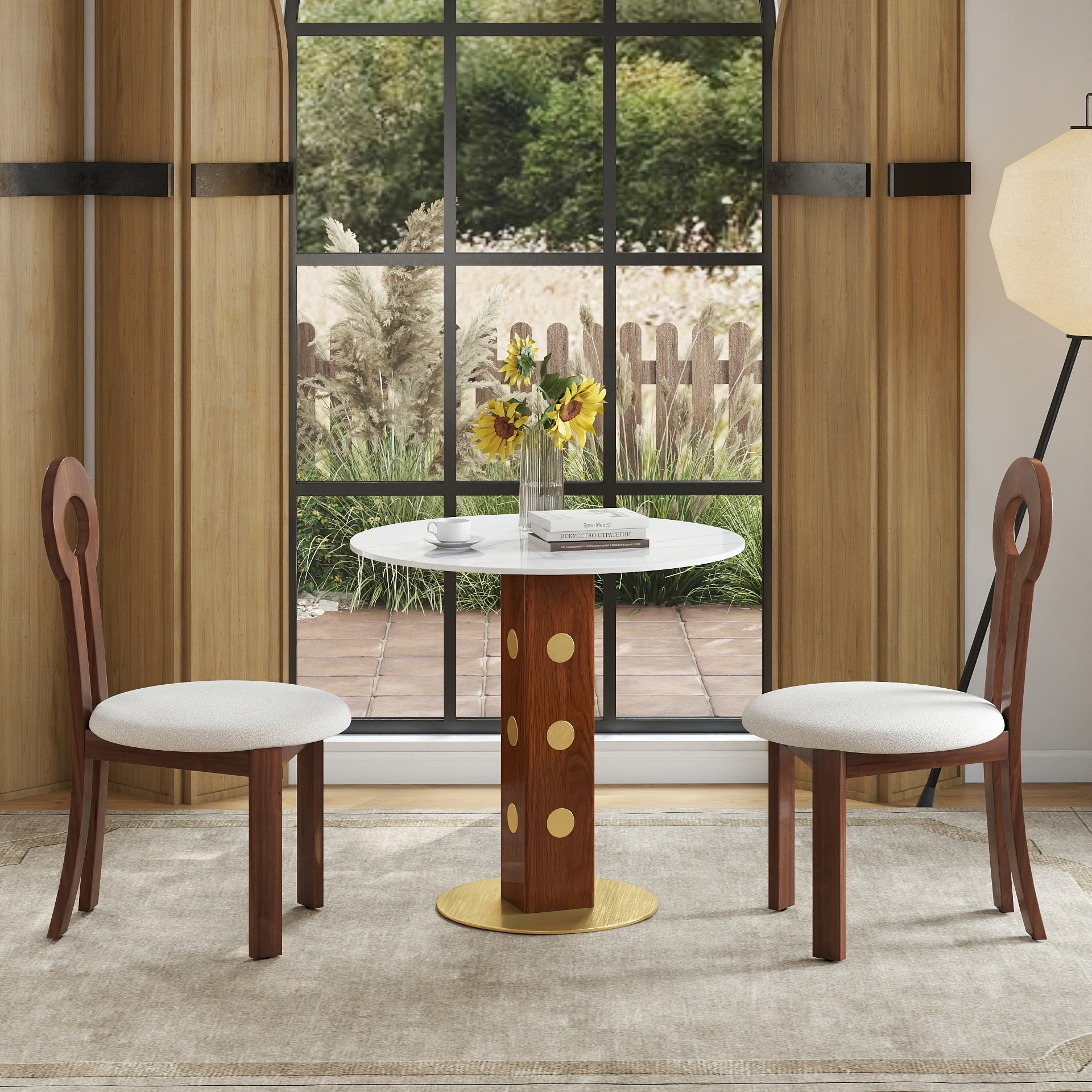 Modern Round Dining Table 33.5 Sintered Stone Table Wooden Leg 2 Person Kitchen Table Small Space 150lbs